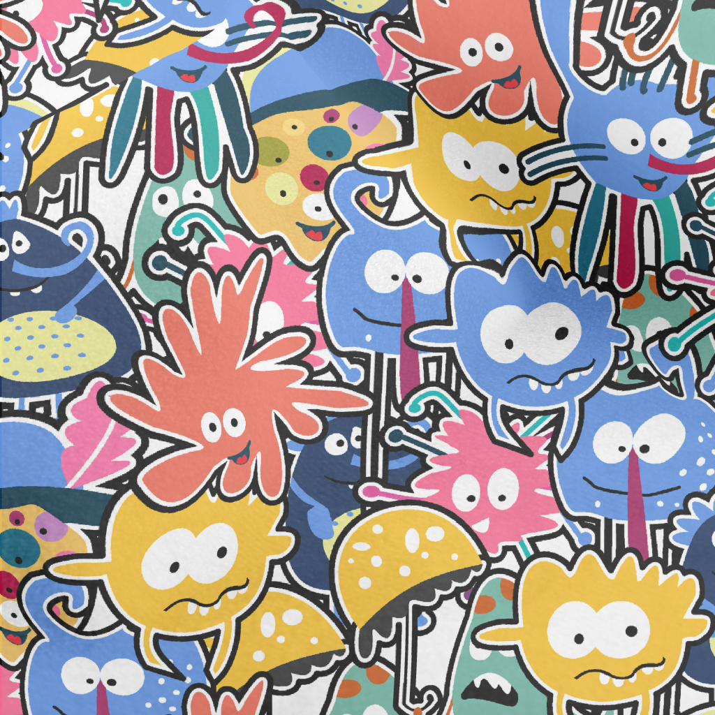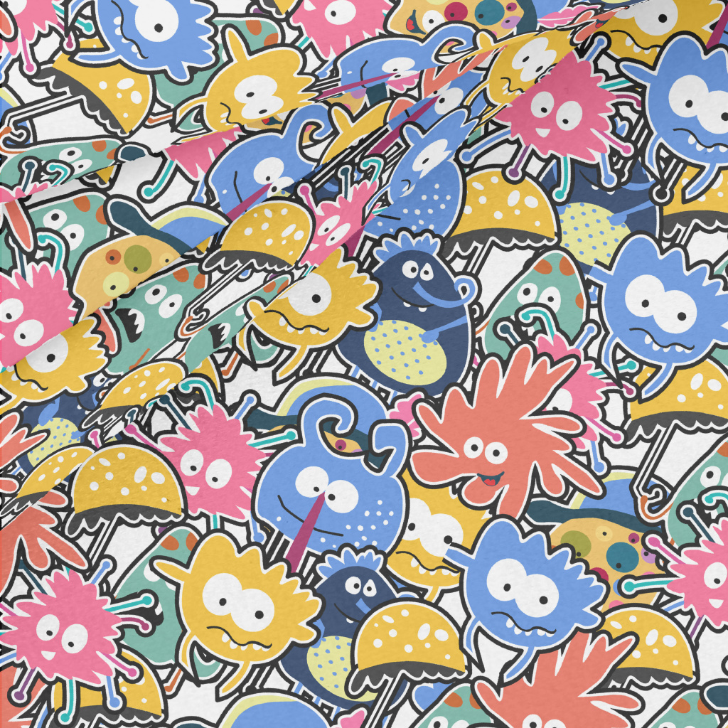 搞怪畸形的外星人圖案水晶絨(幅寬160公分)