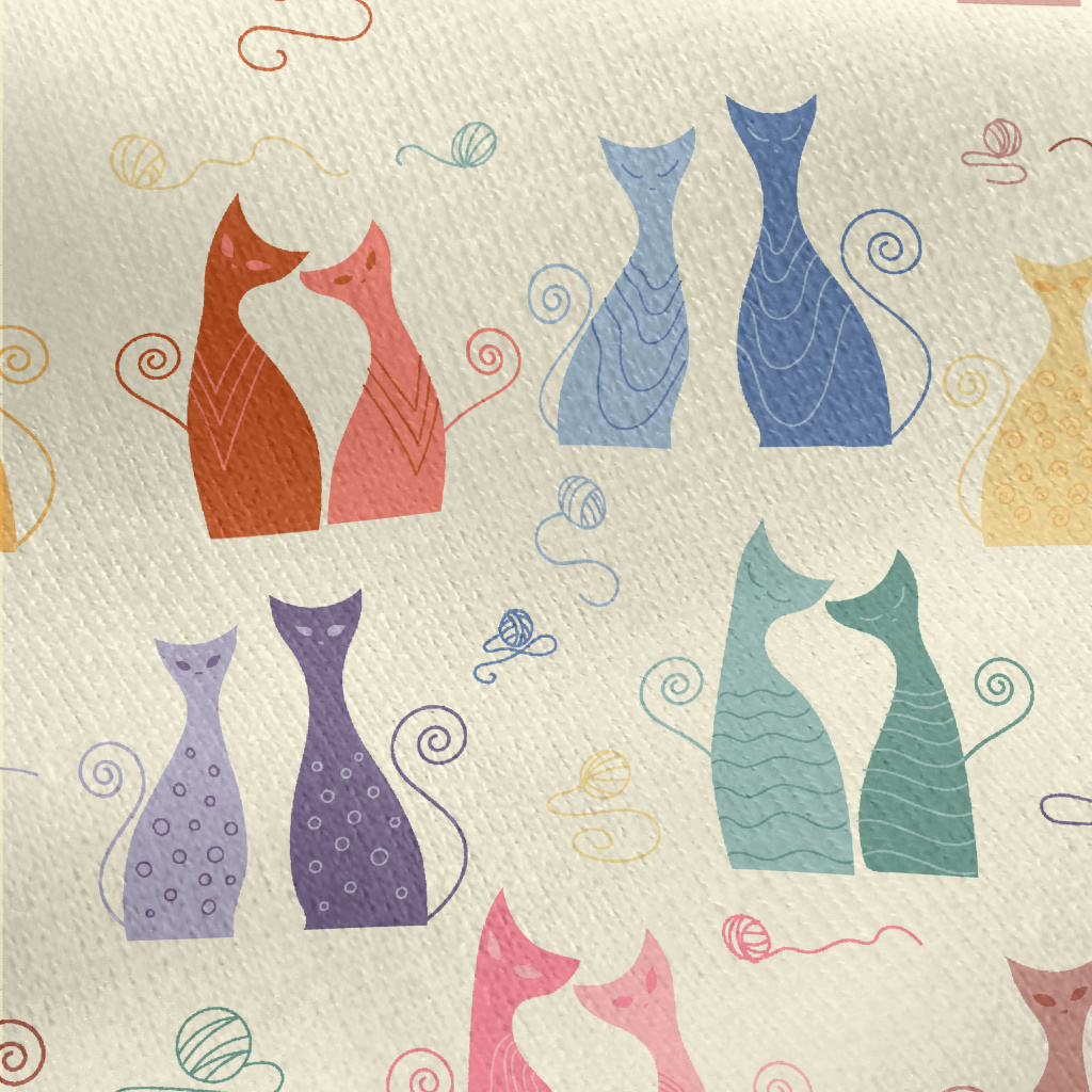 五顏六色的雙對貓咪刷毛布(幅寬150公分)