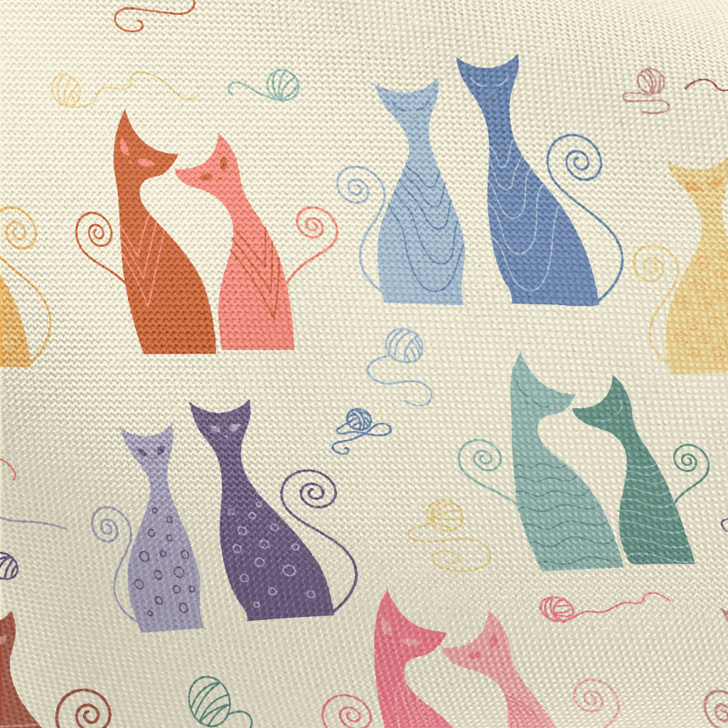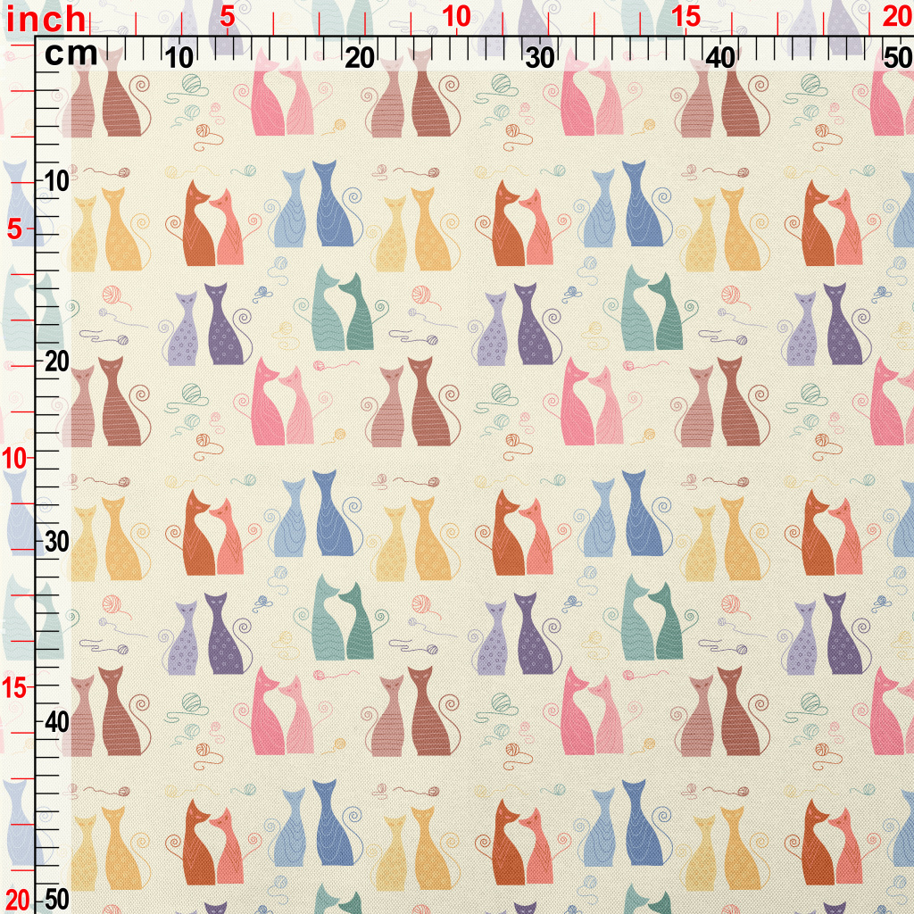 五顏六色的雙對貓咪春亞紡(幅寬160公分)