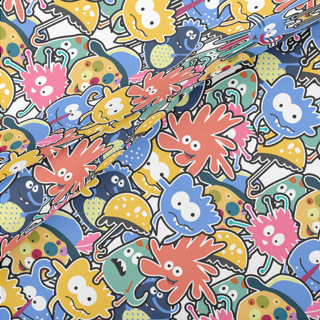 搞怪畸形的外星人圖案薄棉布(幅寬150公分)