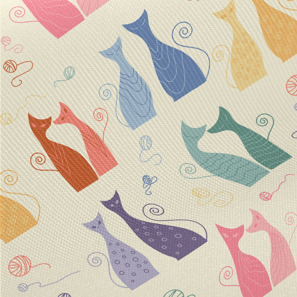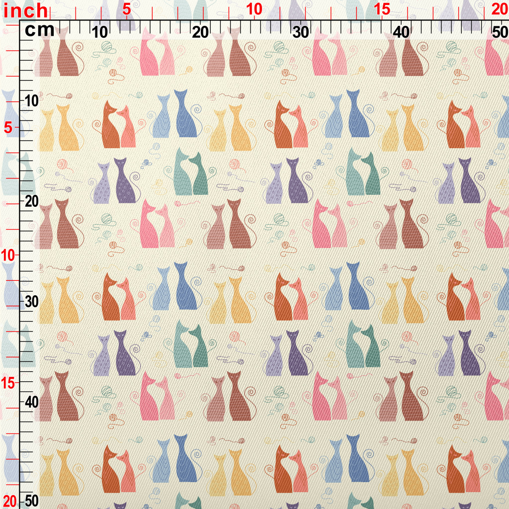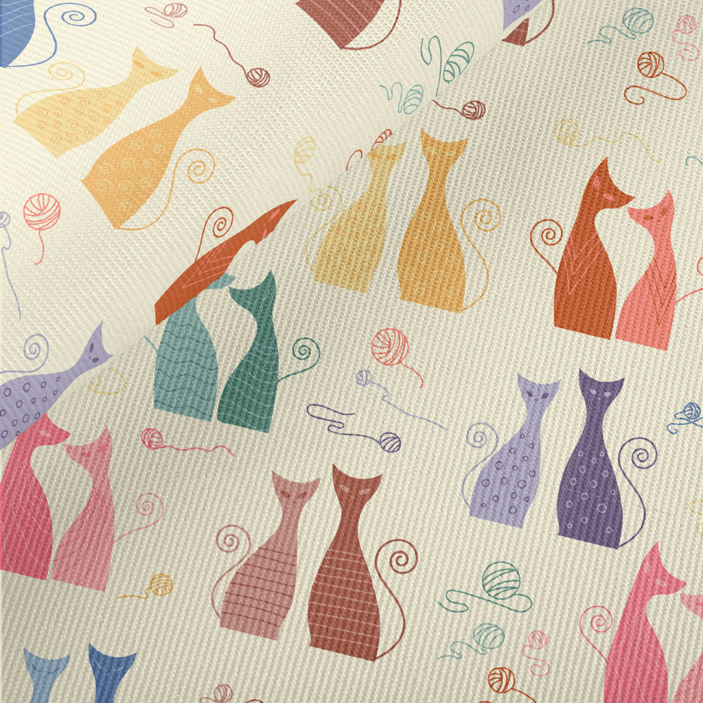 五顏六色的雙對貓咪厚棉布(幅寬150公分)