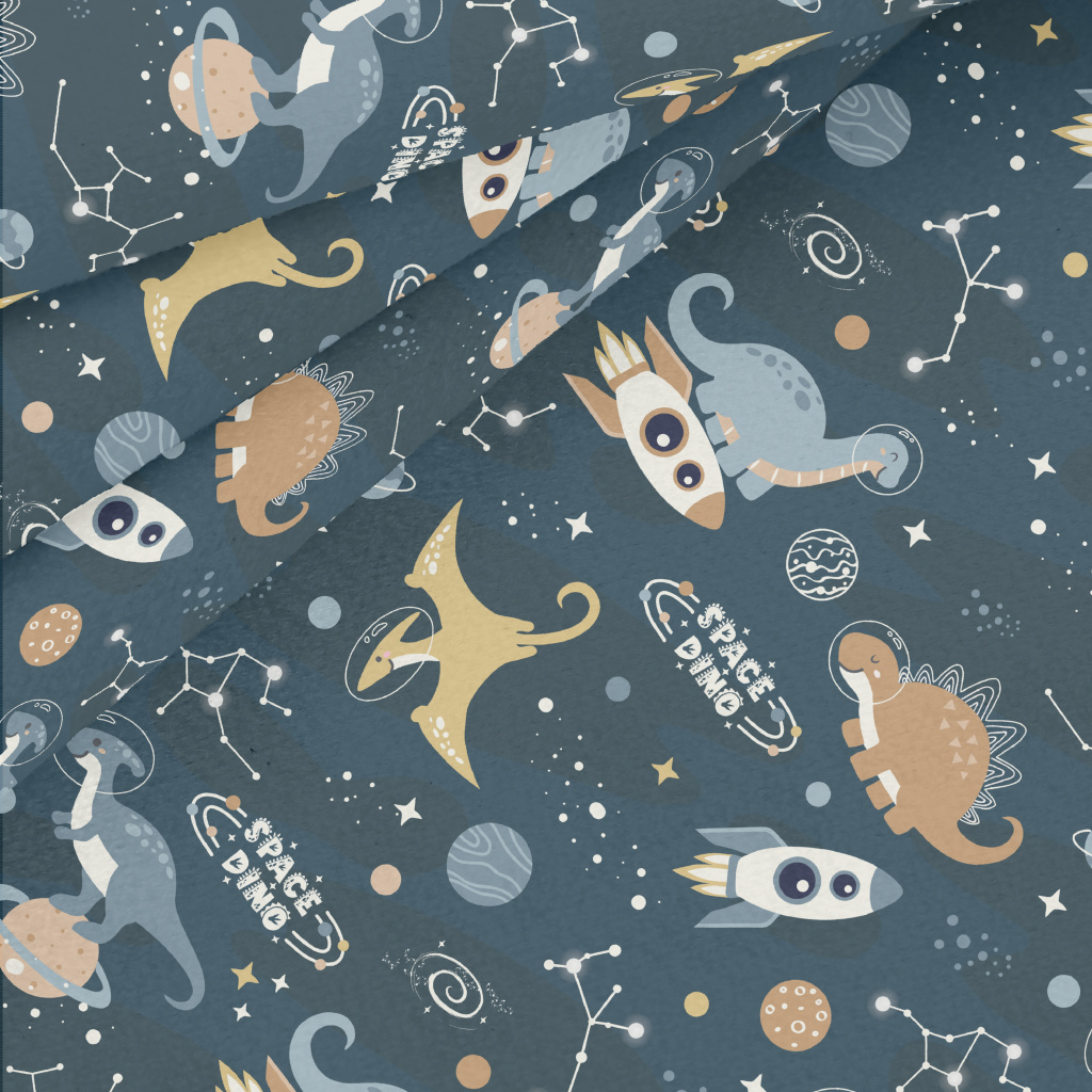 飄在美麗星空的恐龍水晶絨(幅寬160公分)