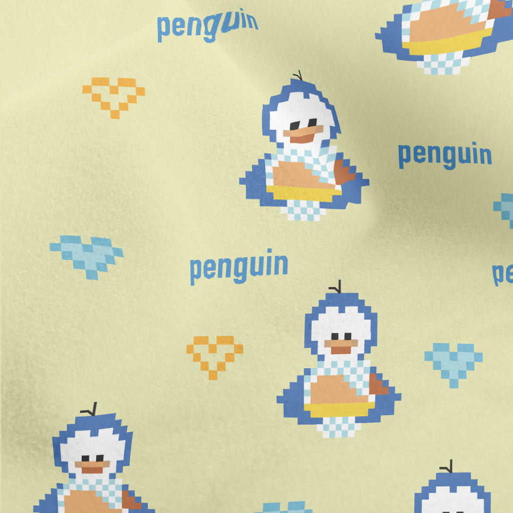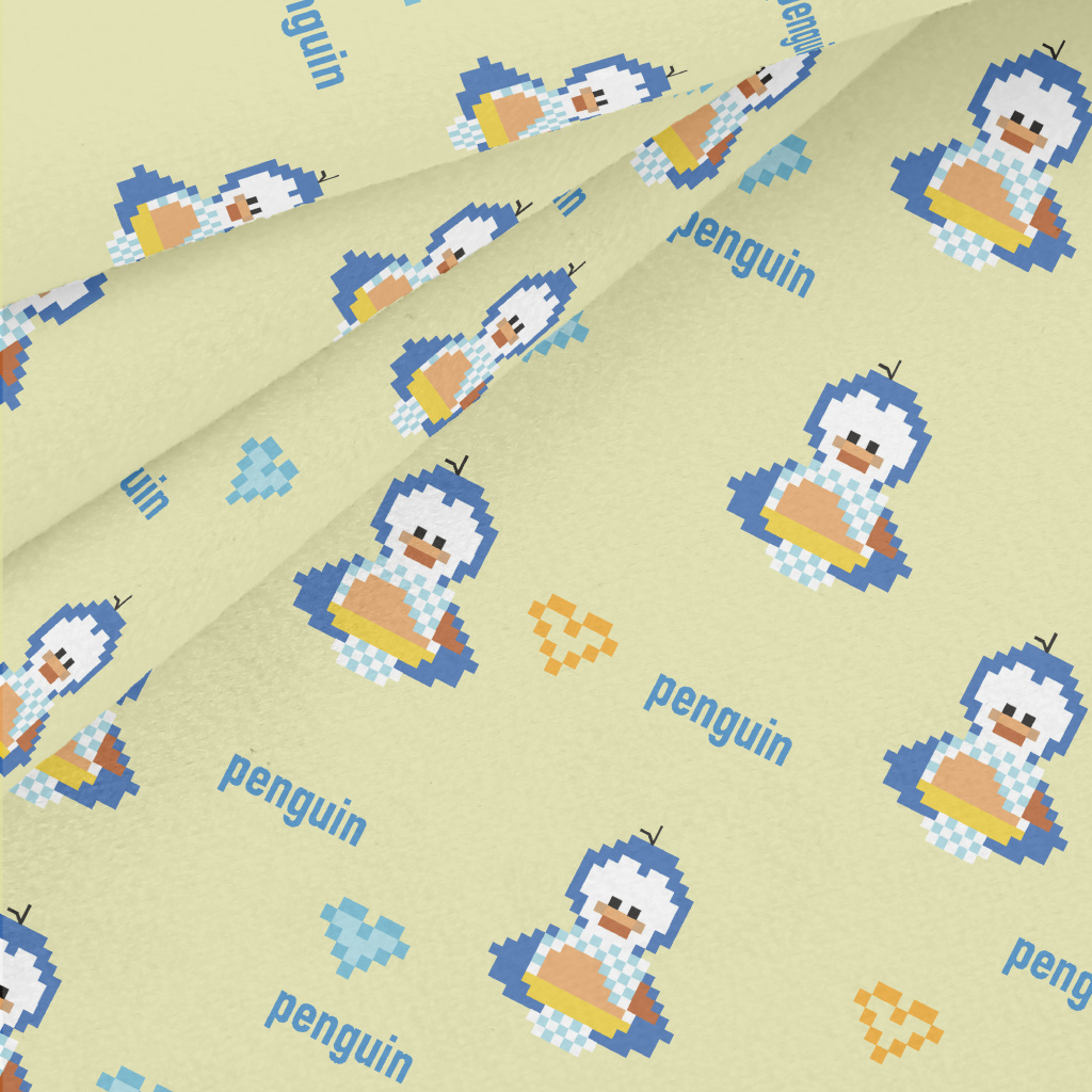 像素風格的企鵝水晶絨(幅寬160公分)