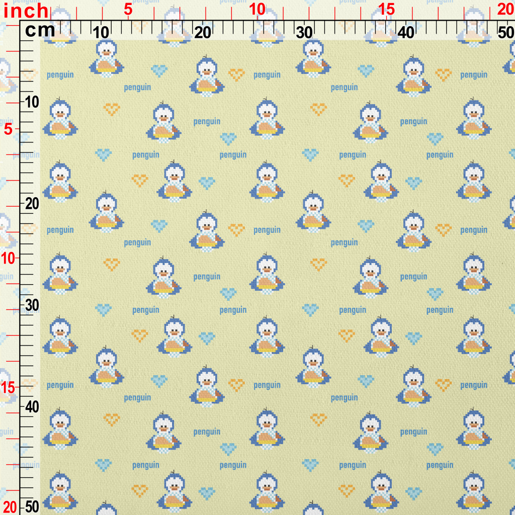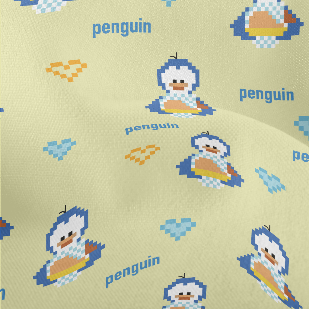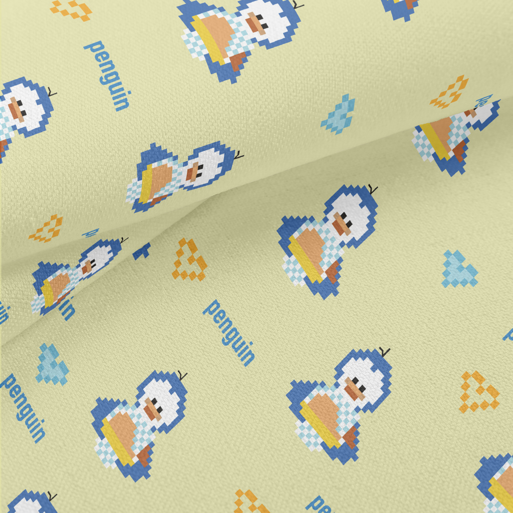 像素風格的企鵝竹節麻(幅寬150公分)