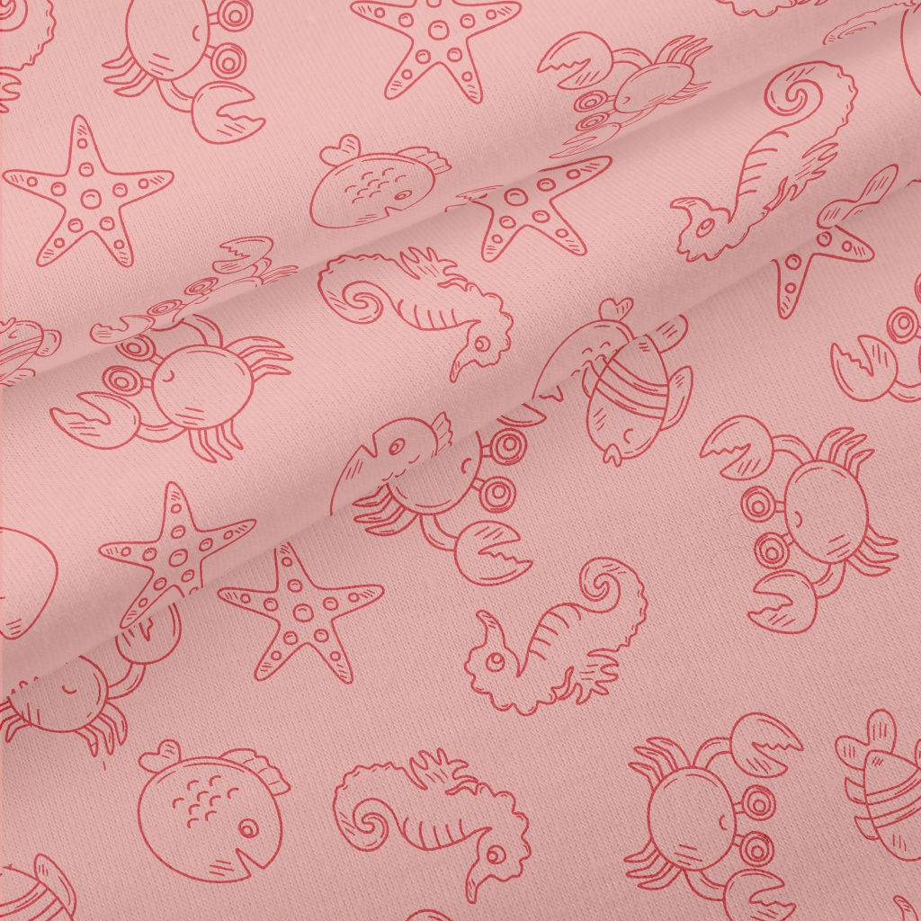 精致簡約的海洋動物們仿棉布(幅寬150公分)