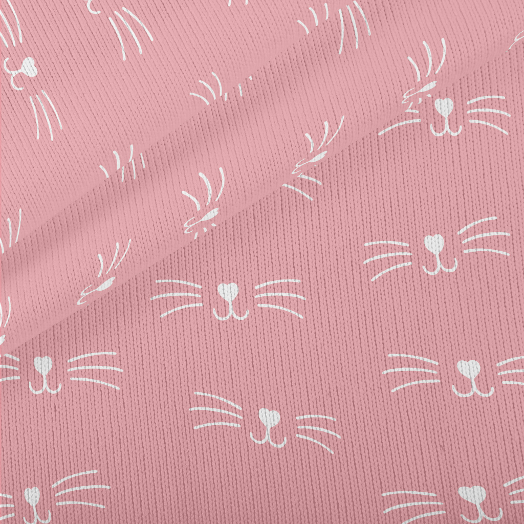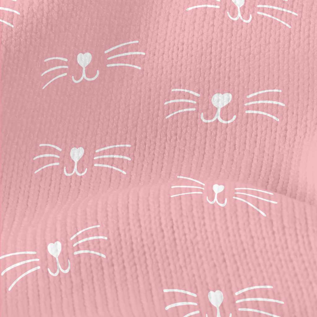簡約白線的貓咪臉仿毛衣布(幅寬150公分)