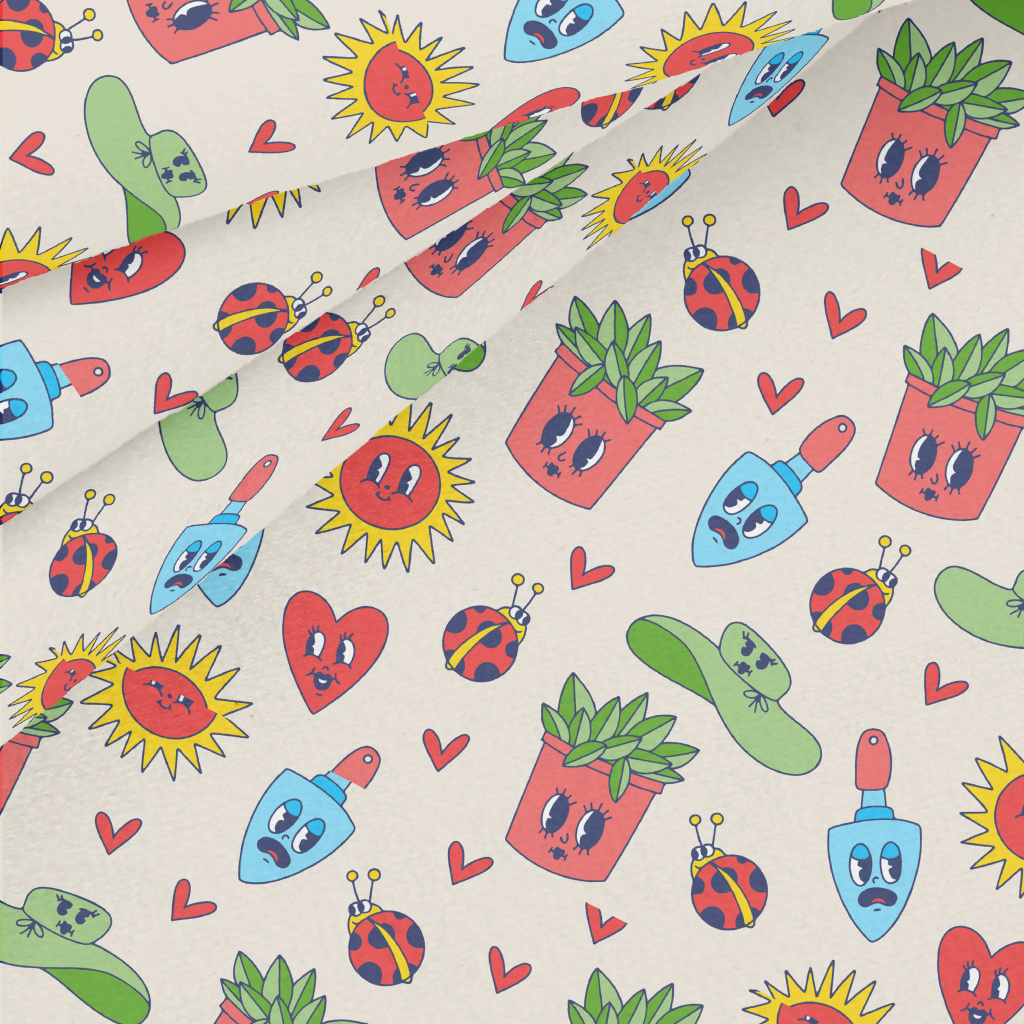 美式畫風的可愛圖案水晶絨(幅寬160公分)