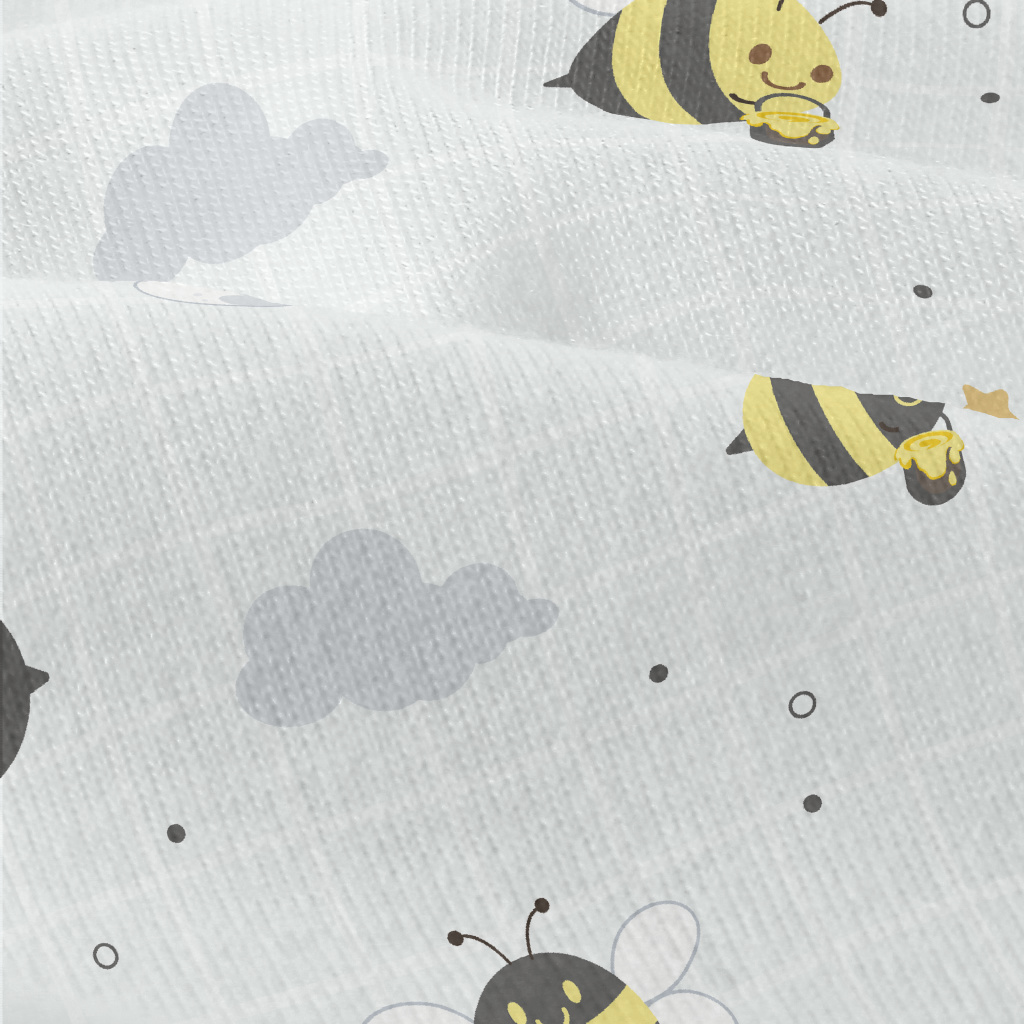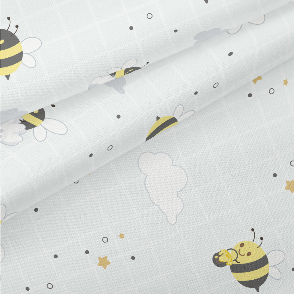 有可愛蜜蜂的灰色格子仿棉布(幅寬150公分)