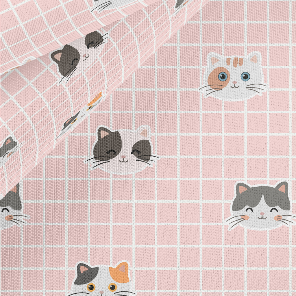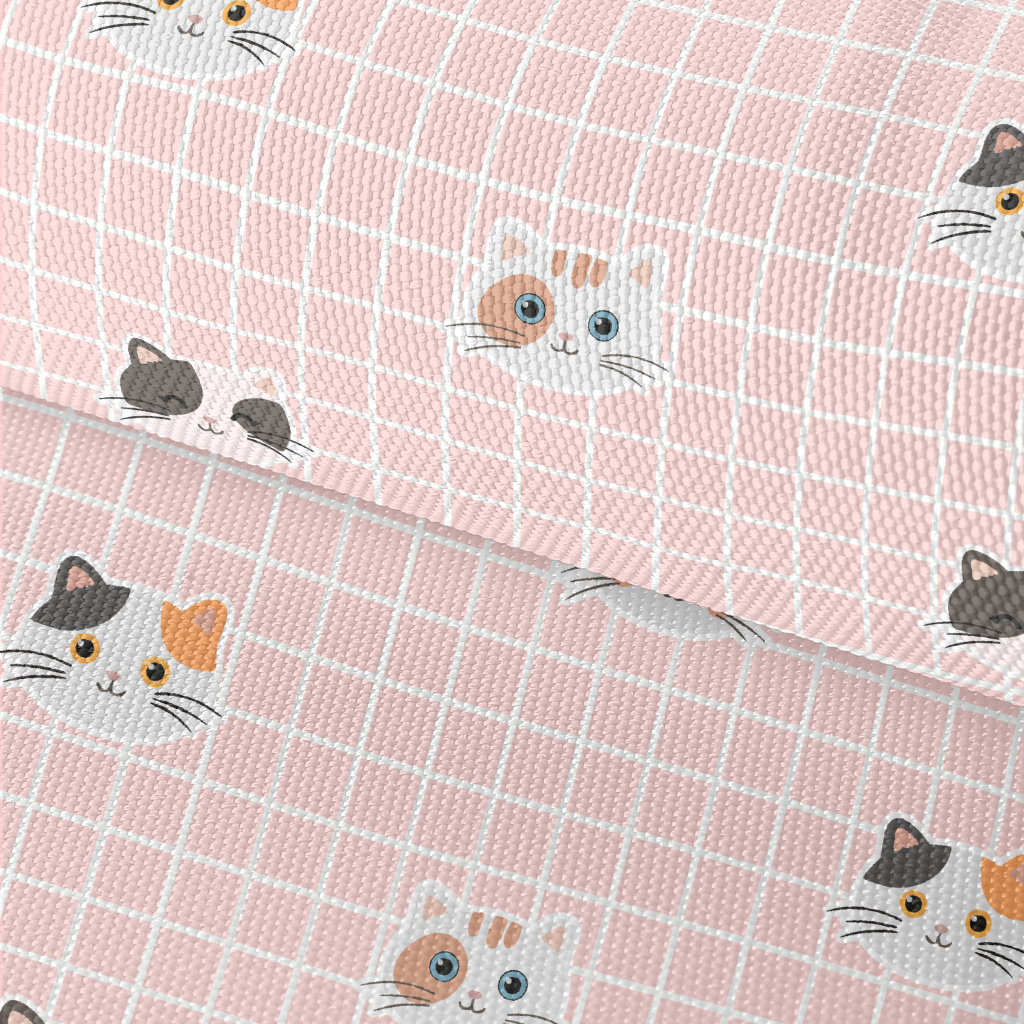 有可愛貓咪的格子牛津布(幅寬150公分)