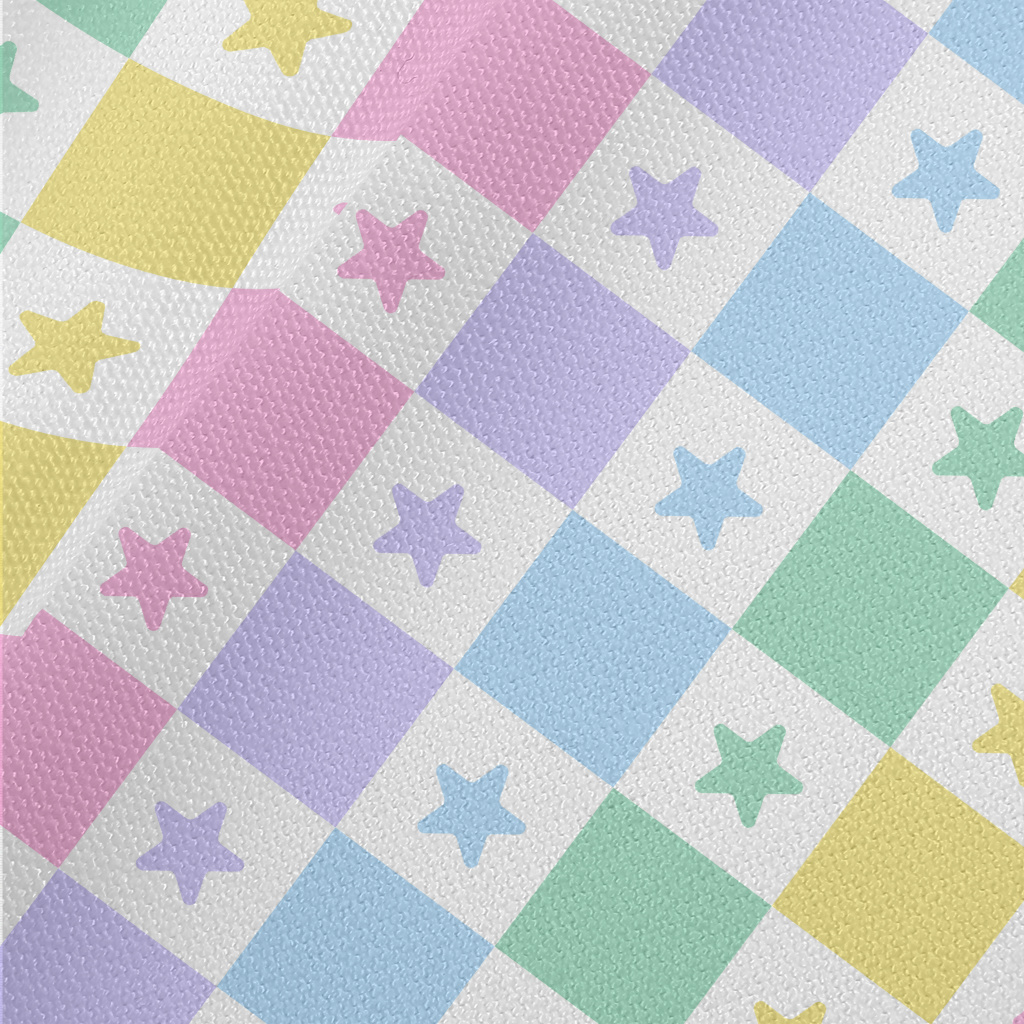 五彩星星的格子帆布(幅寬150公分)