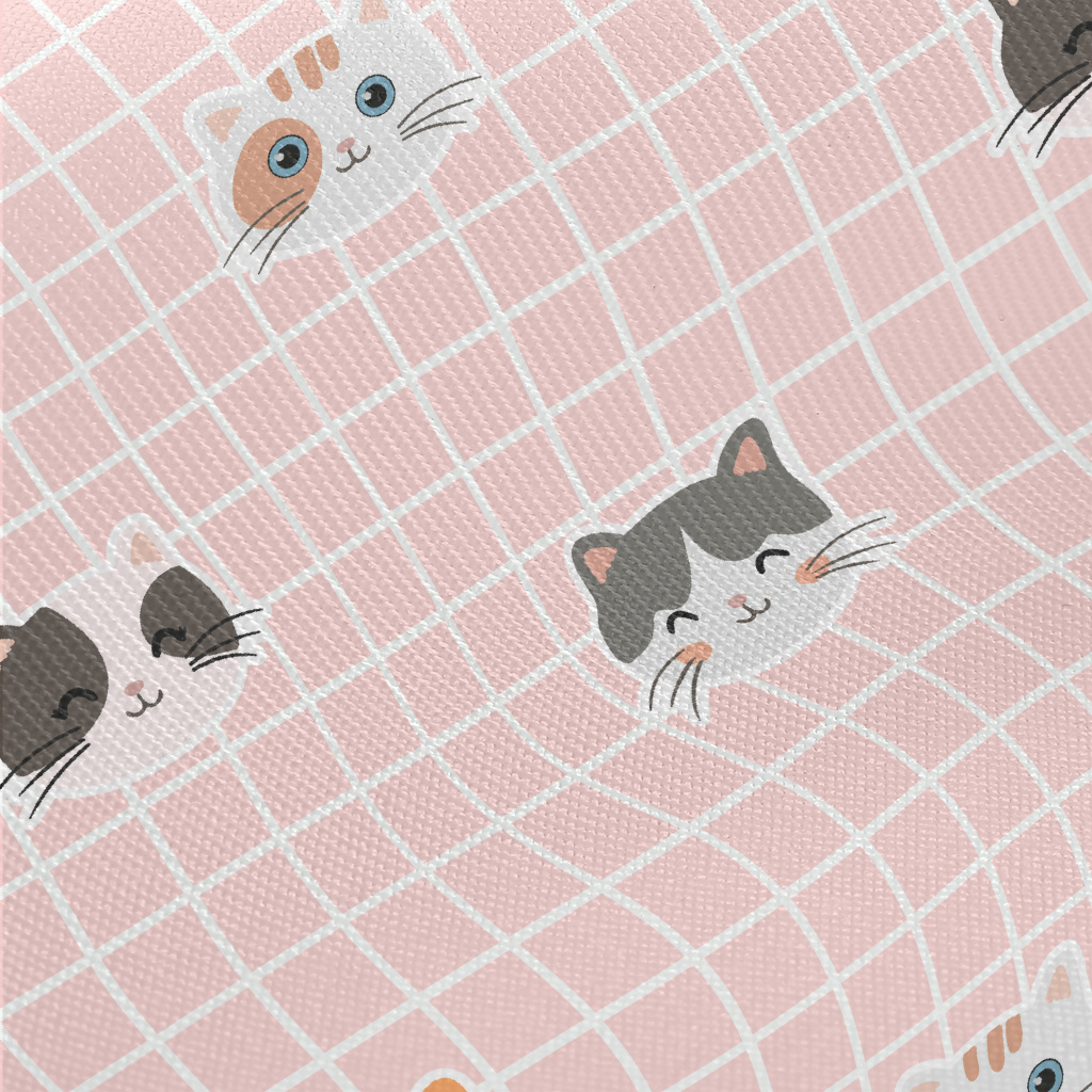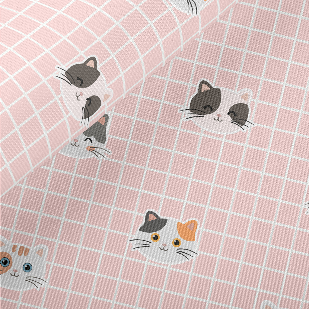 有可愛貓咪的格子斜紋布(幅寬150公分)