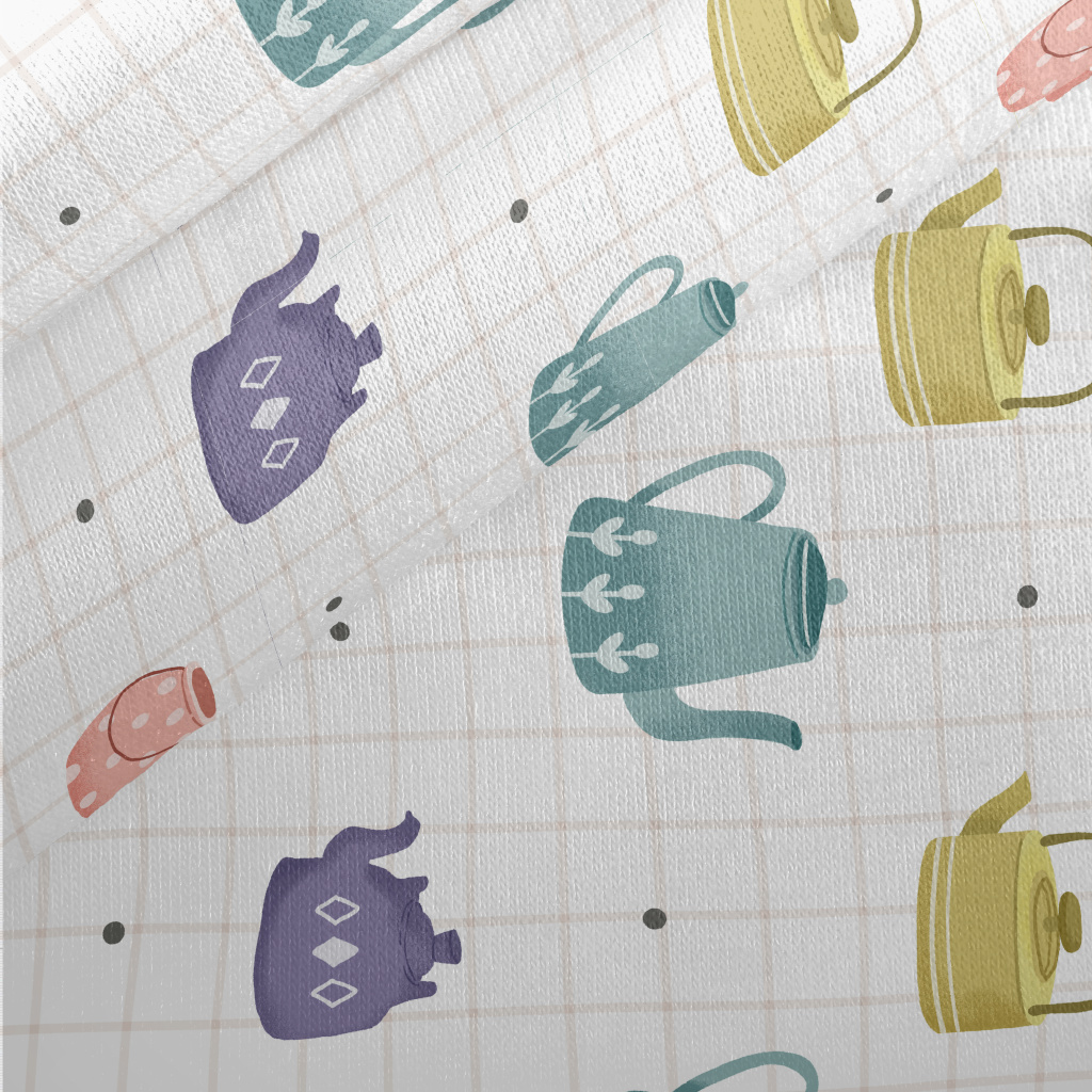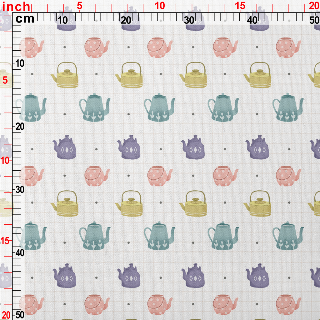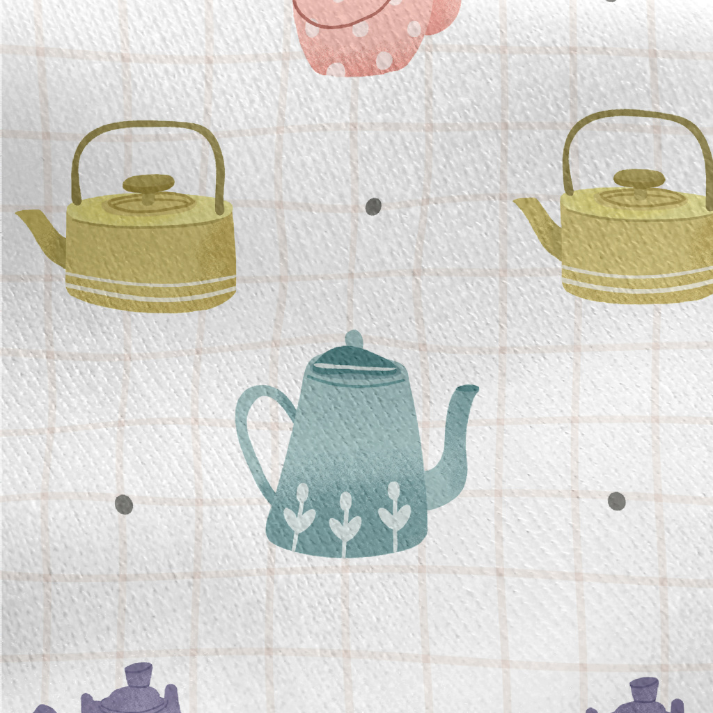 手繪茶壺的格子刷毛布(幅寬150公分)