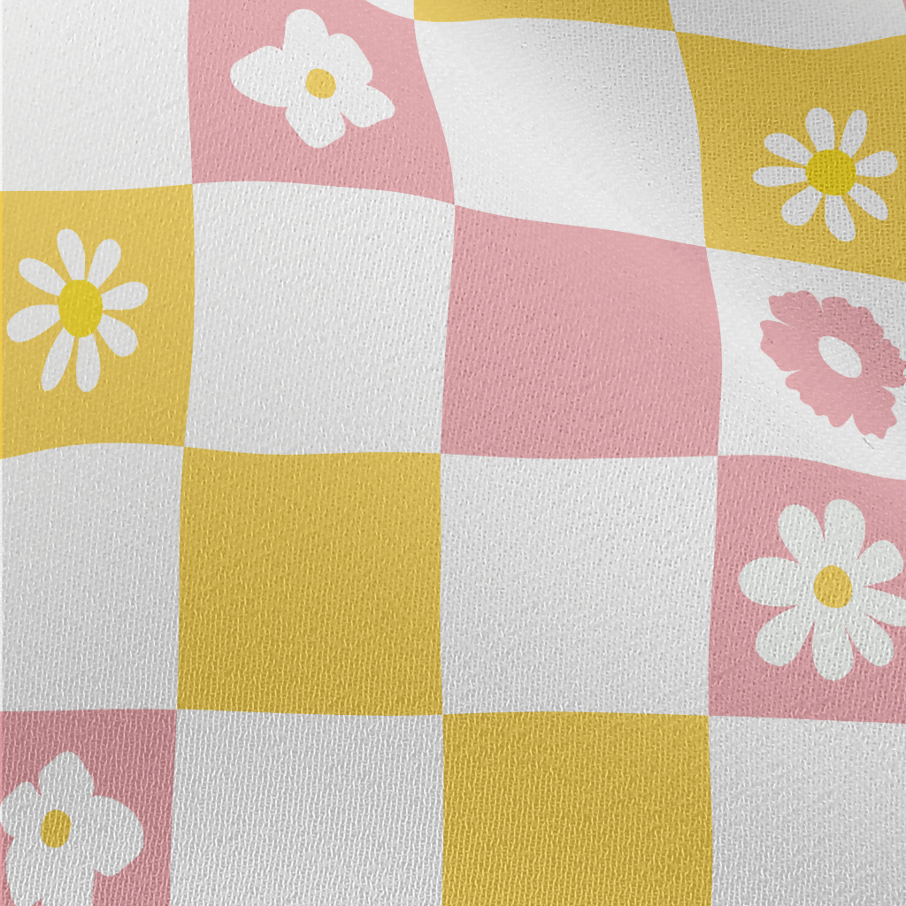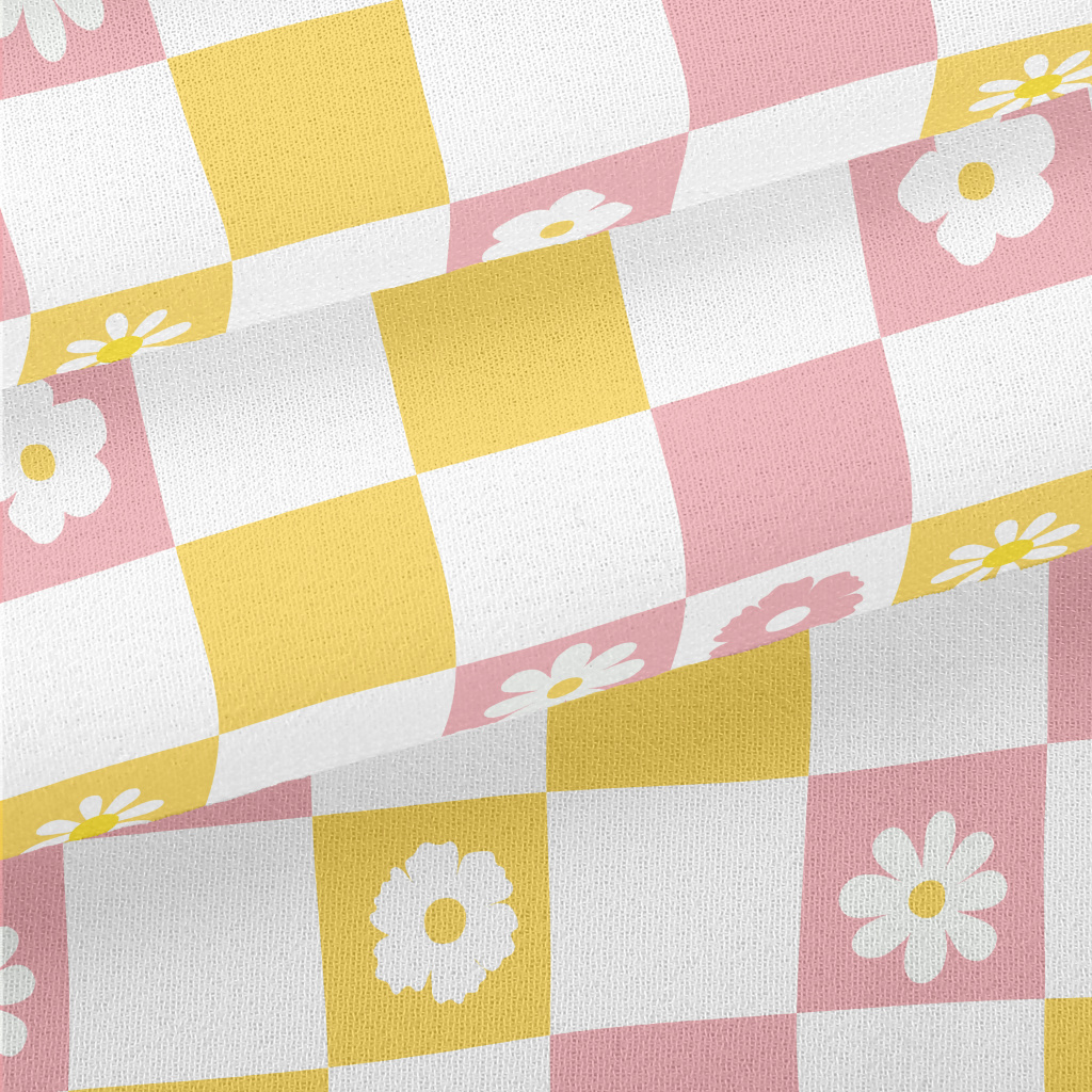 粉嫩清新的花朵格子雪紡布(幅寬150公分)