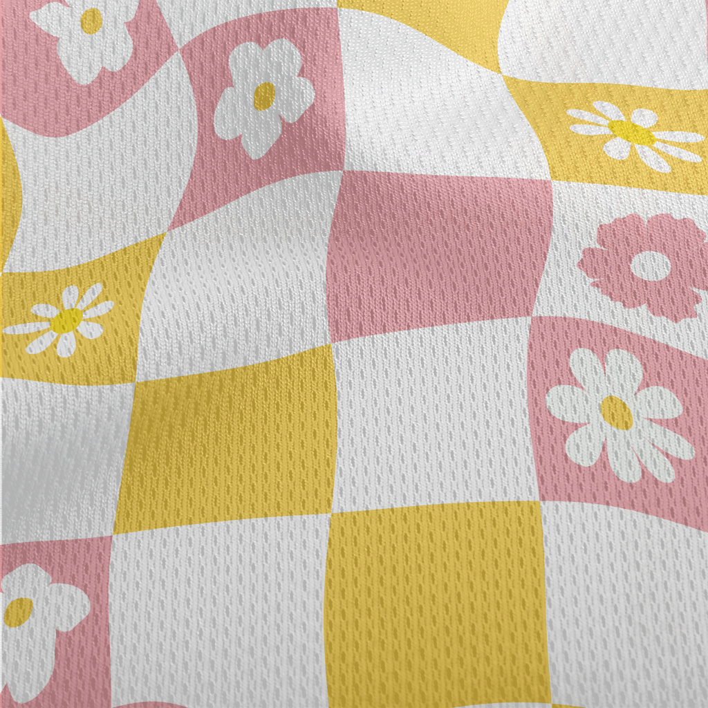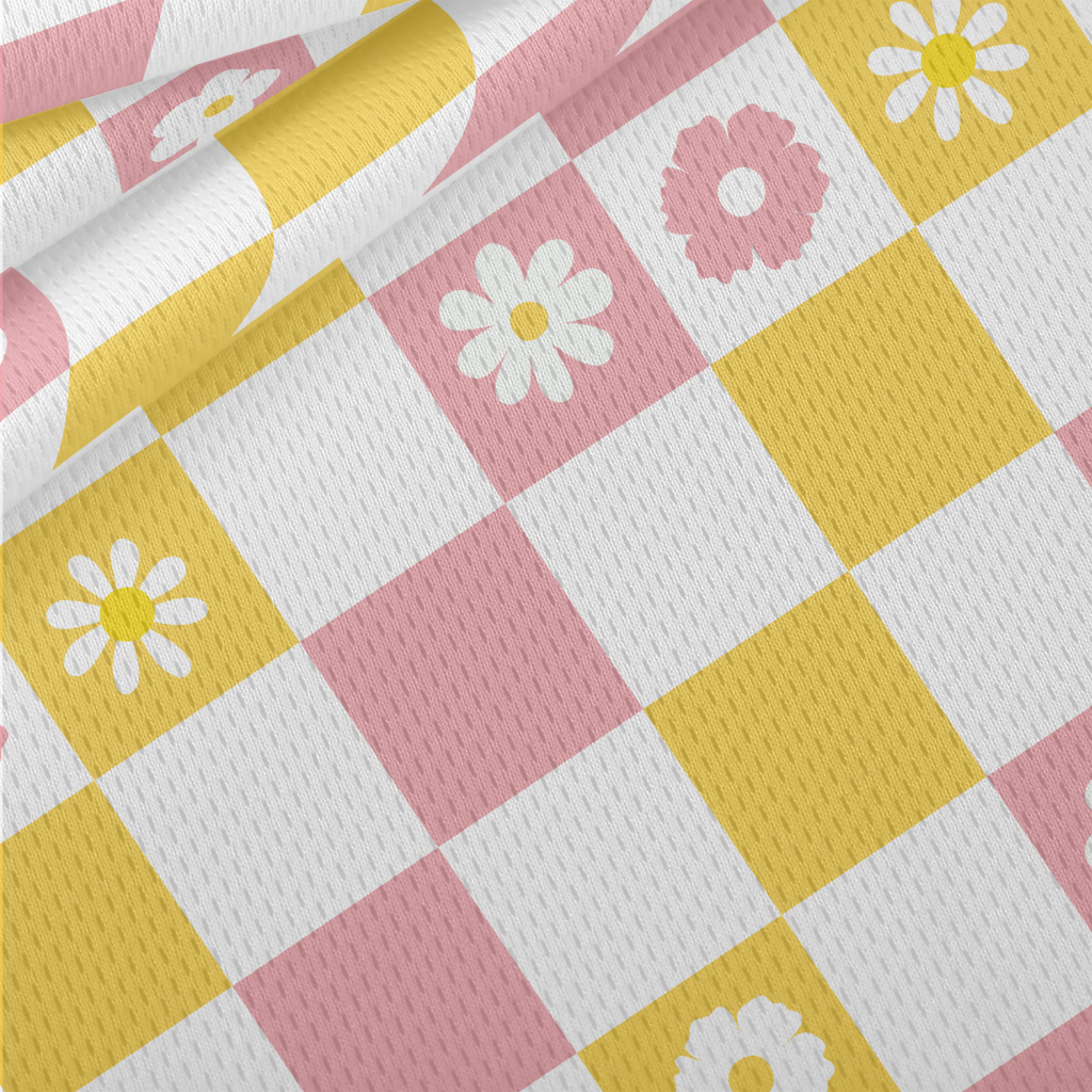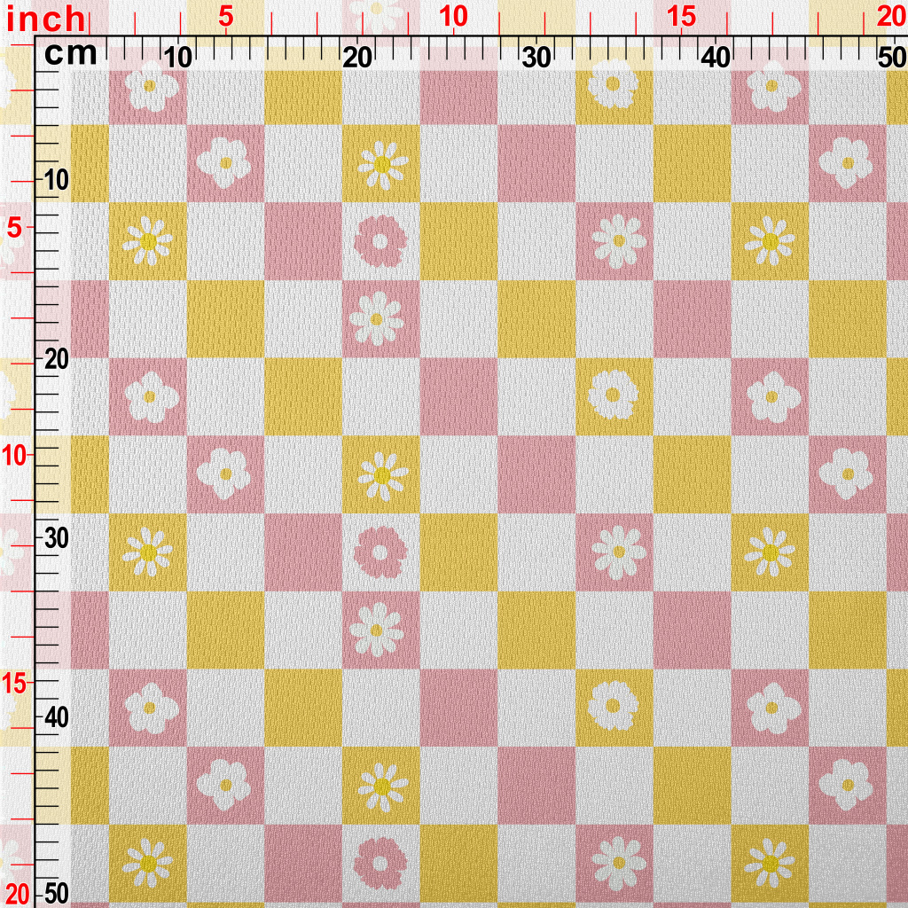 粉嫩清新的花朵格子鳥眼布(幅寬160公分)