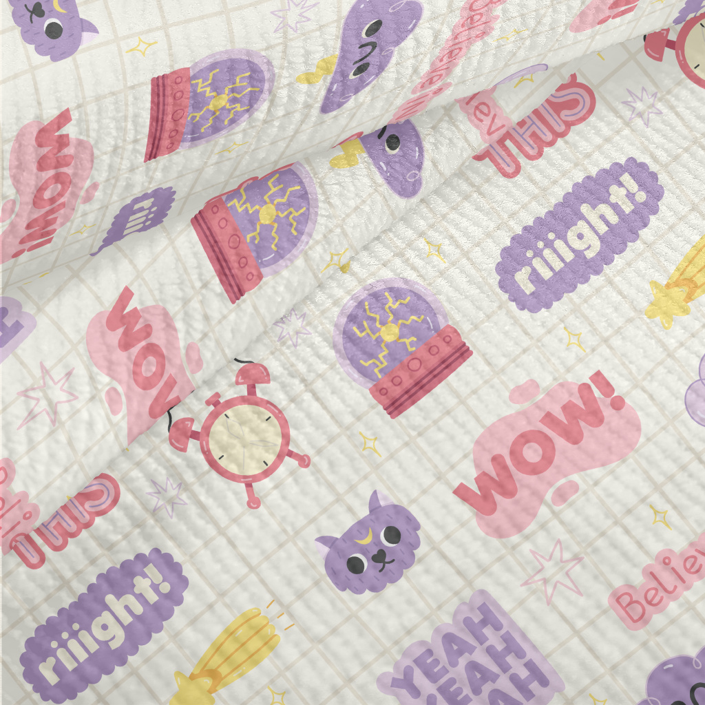 可愛的英文字體與圖案毛巾布(幅寬160公分)