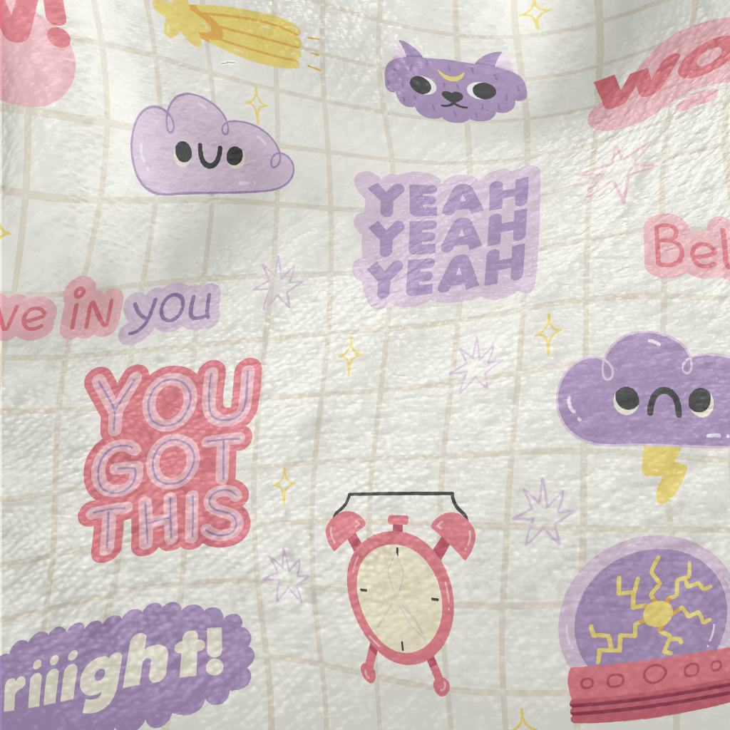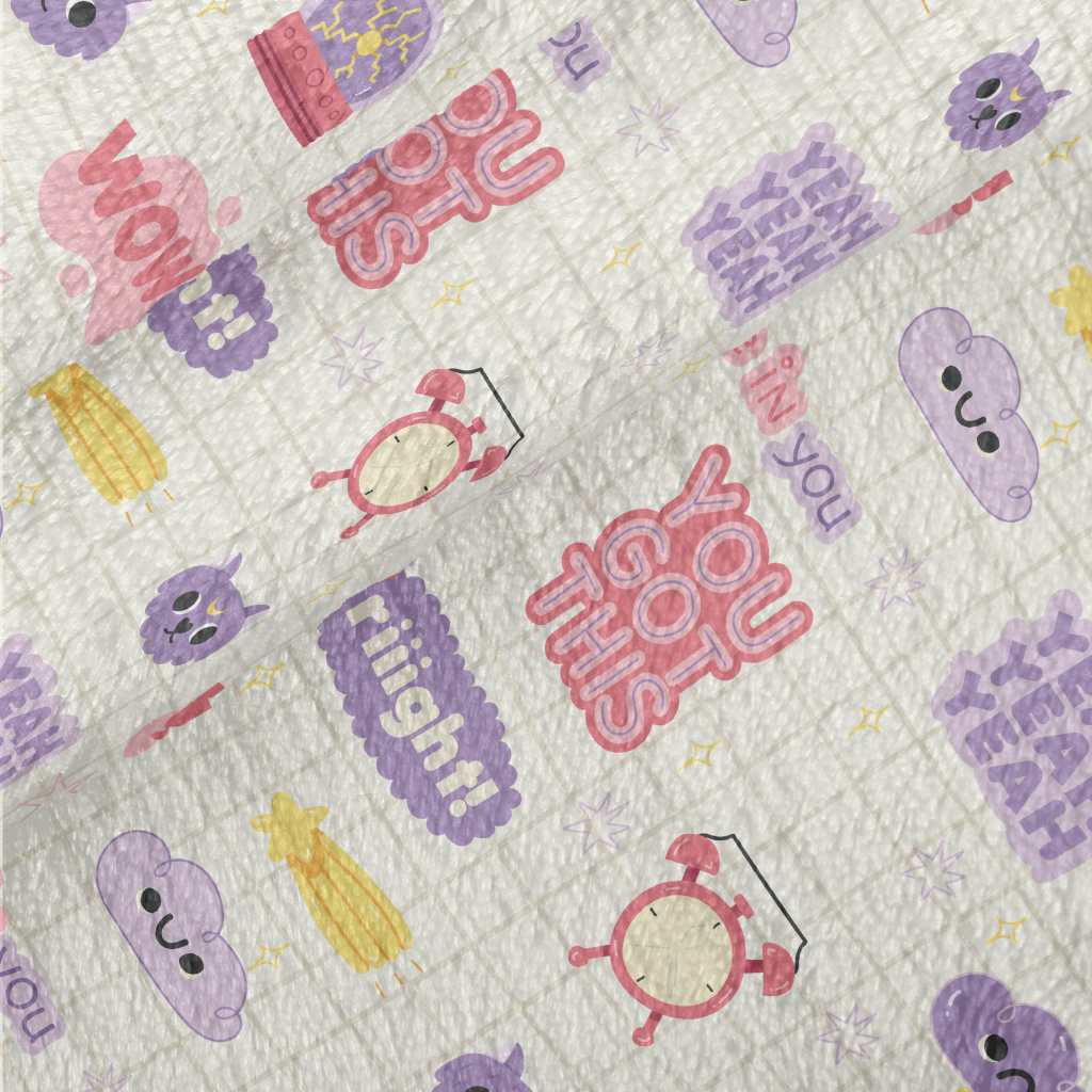可愛的英文字體與圖案法蘭絨(幅寬150公分)