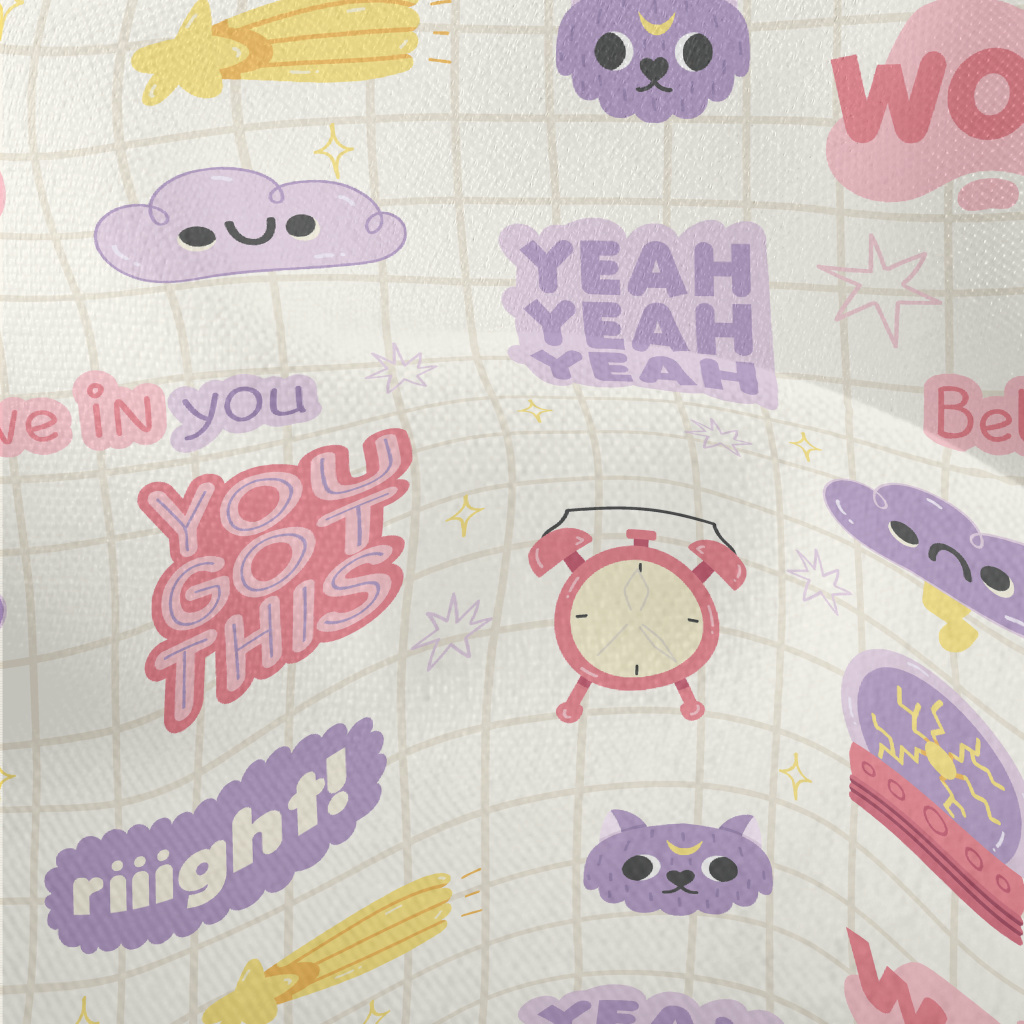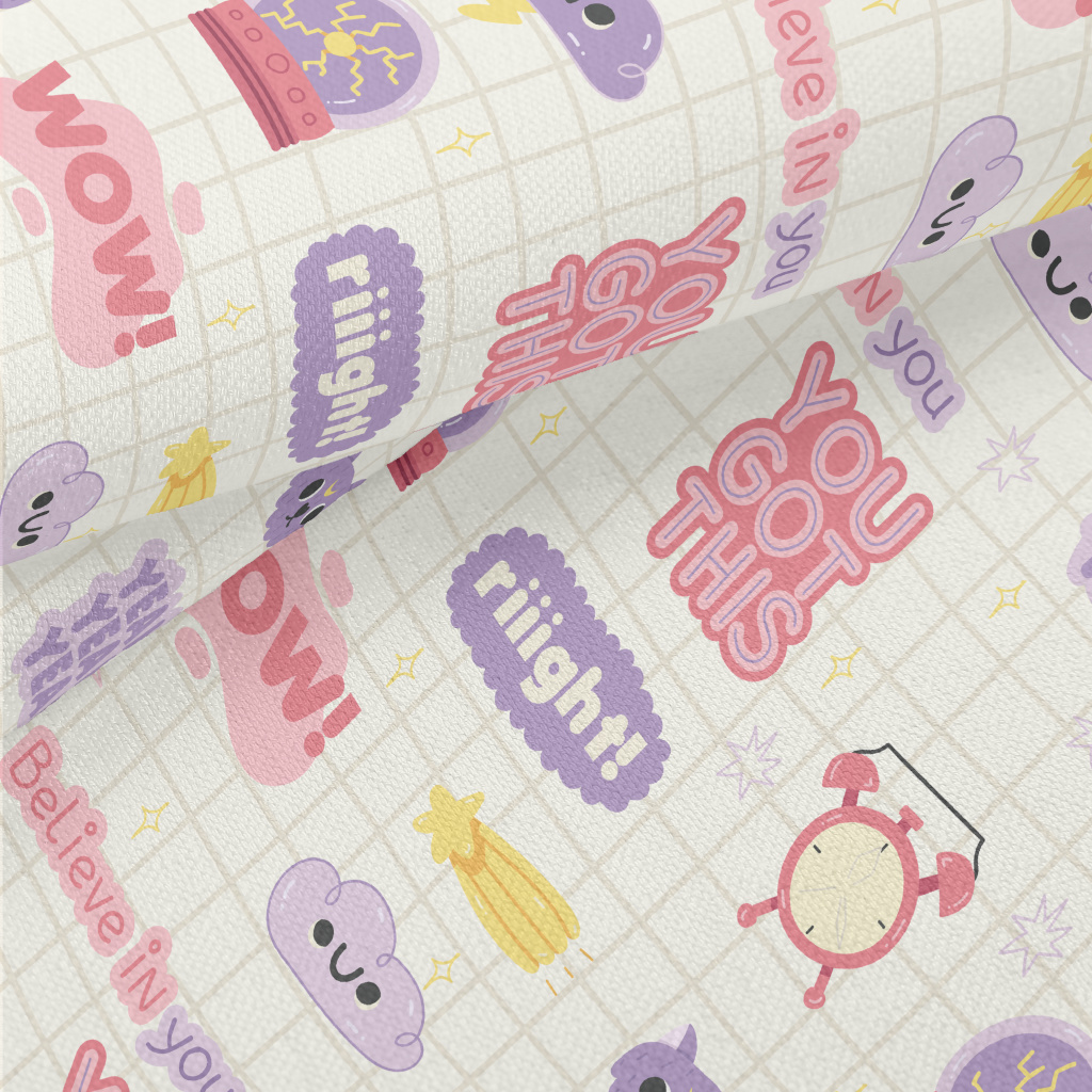 可愛的英文字體與圖案竹節麻(幅寬150公分)