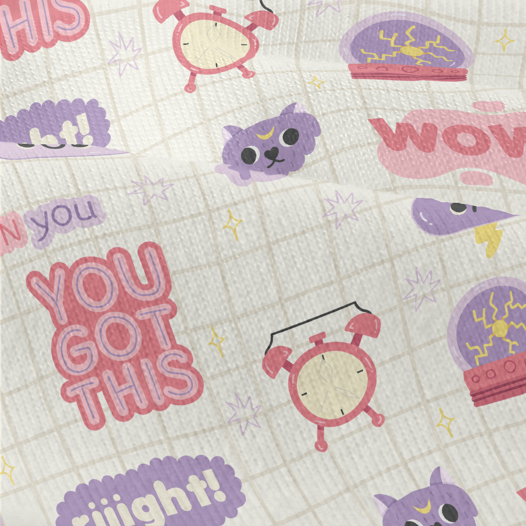 可愛的英文字體與圖案仿棉布(幅寬150公分)
