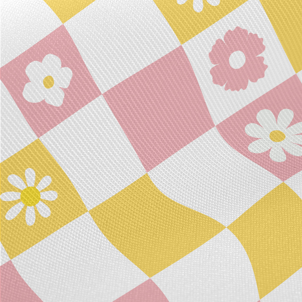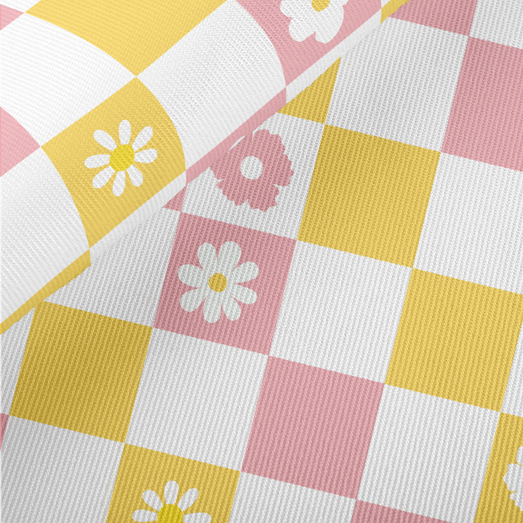 粉嫩清新的花朵格子厚棉布(幅寬150公分)