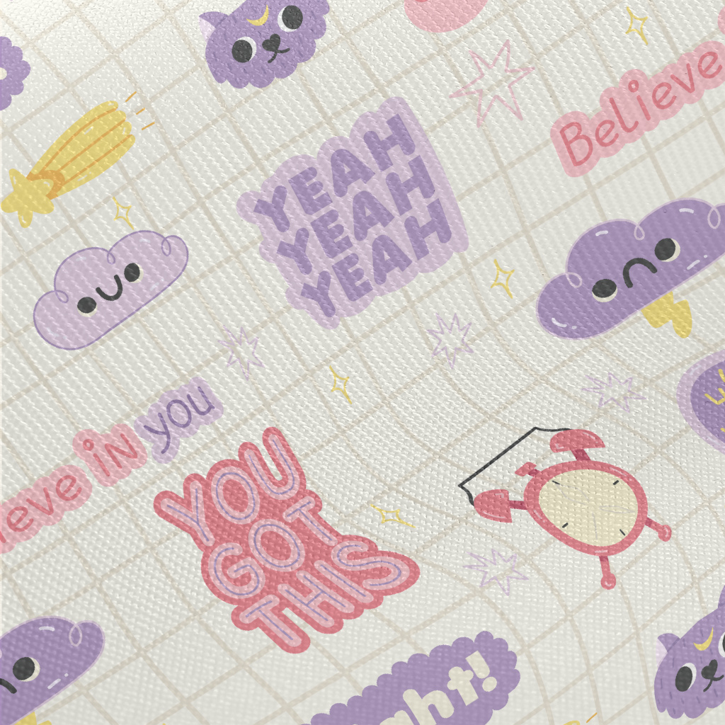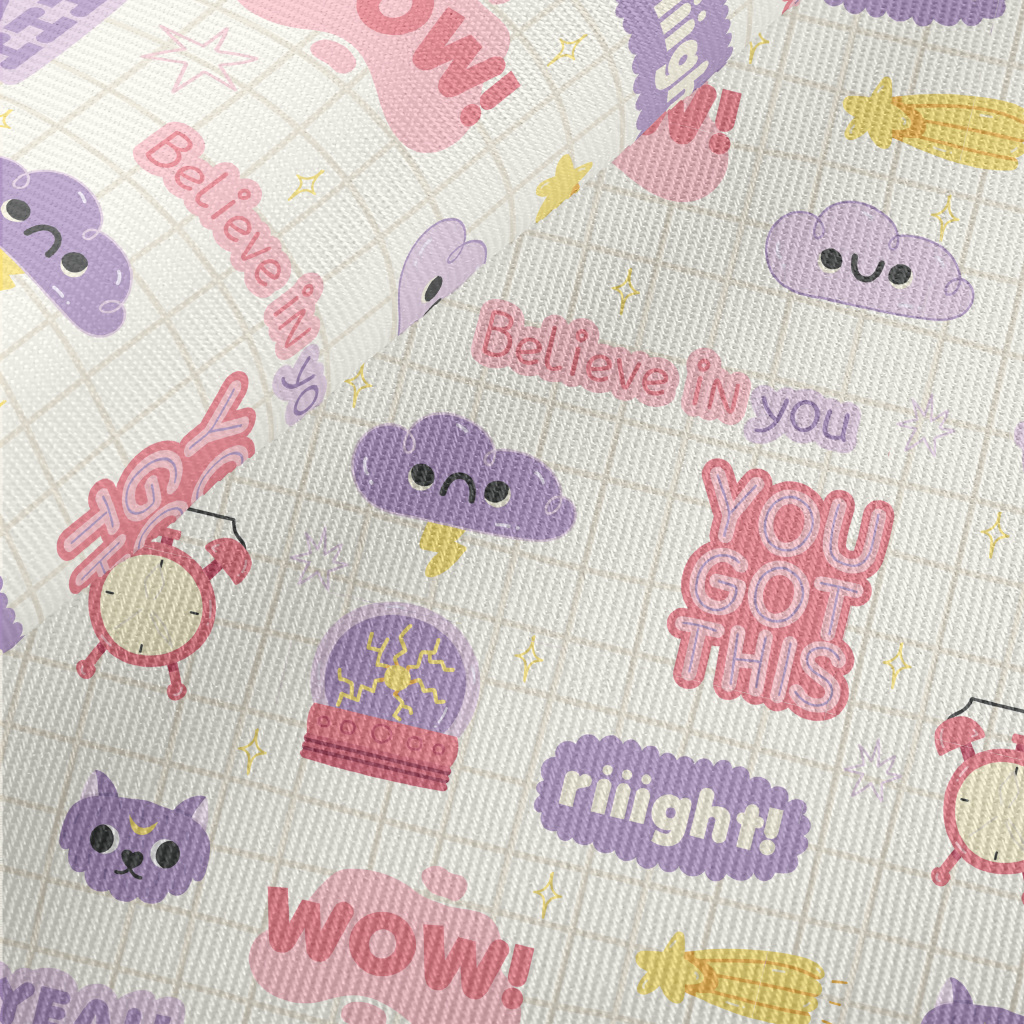 可愛的英文字體與圖案厚棉布(幅寬150公分)