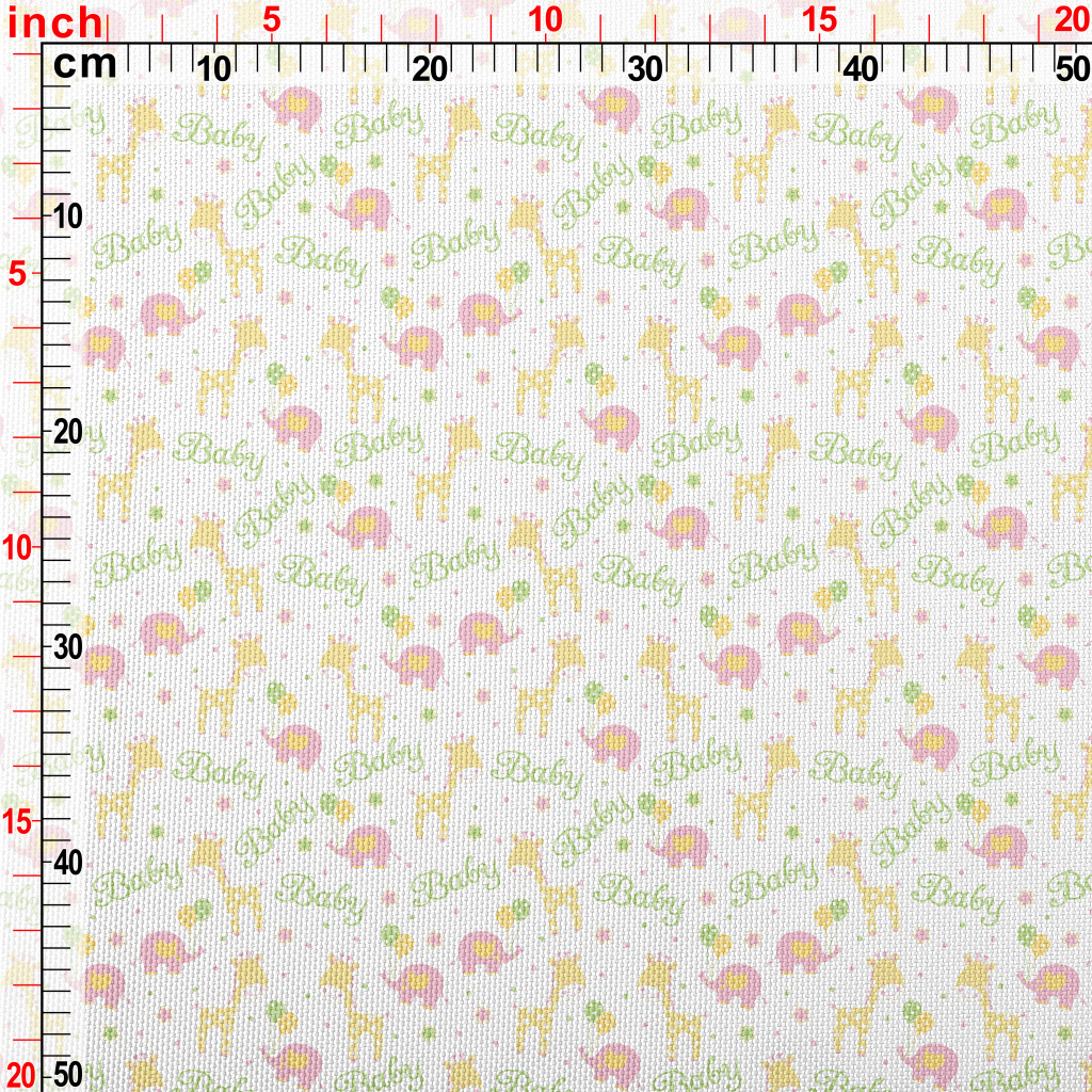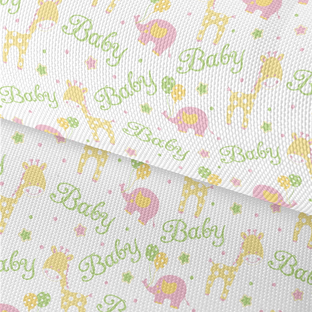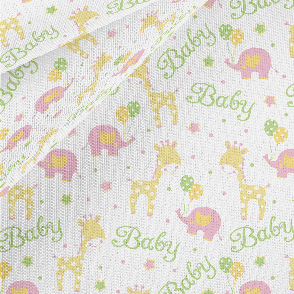 粉嫩可愛的大象與長頸鹿牛津布(幅寬150公分)