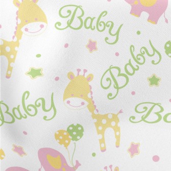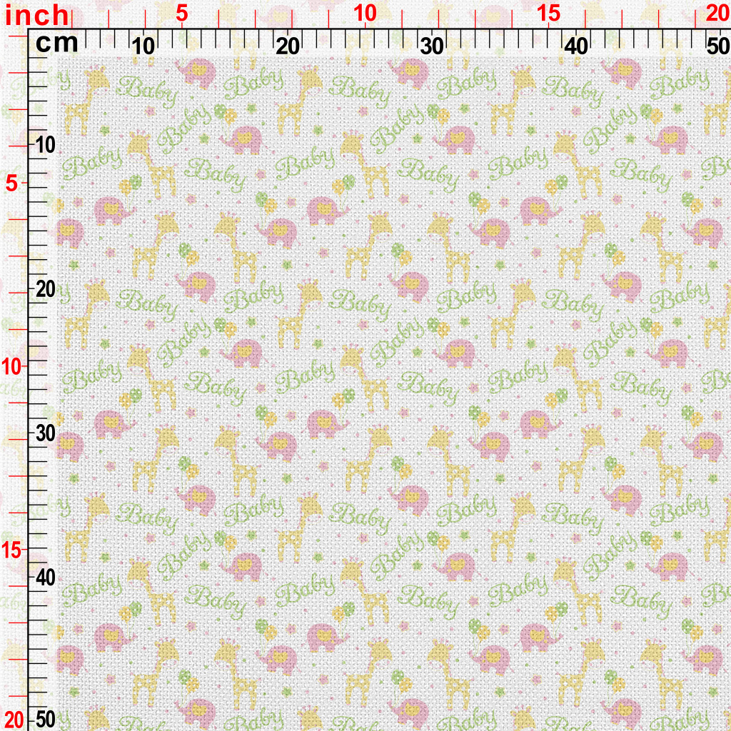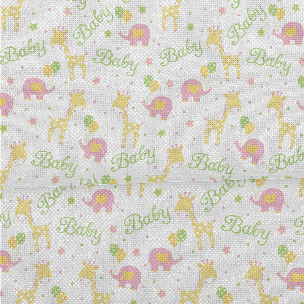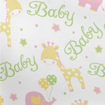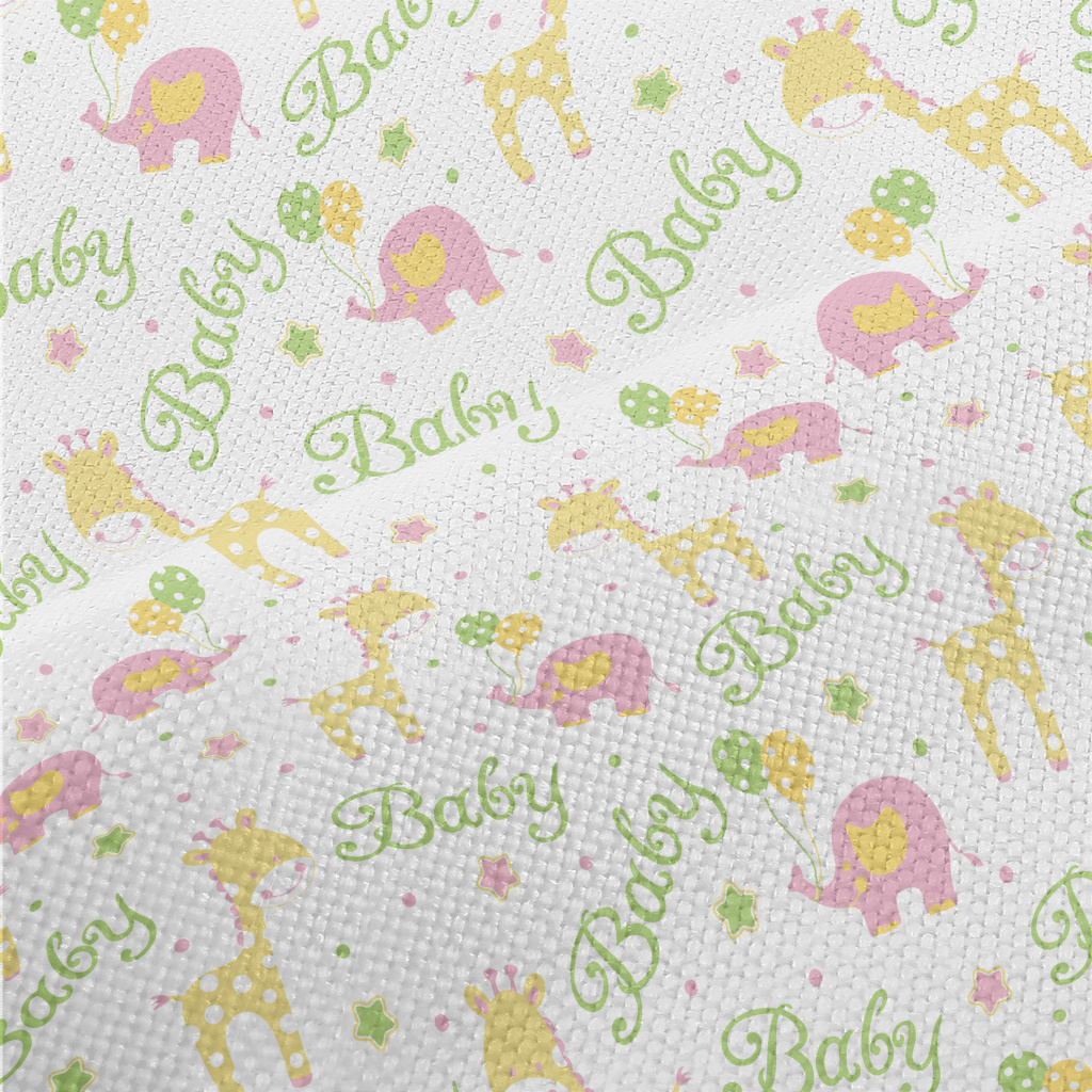 粉嫩可愛的大象與長頸鹿麻布(幅寬150公分)