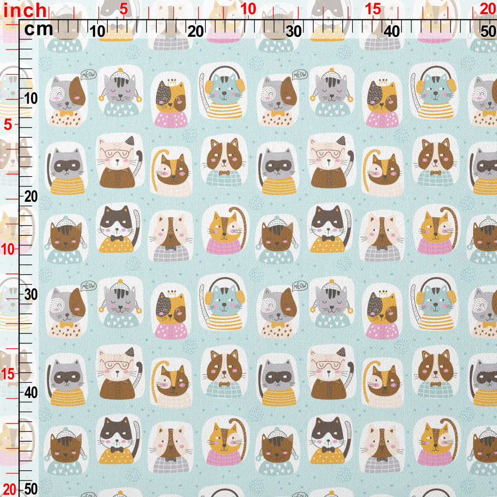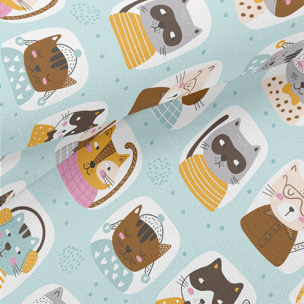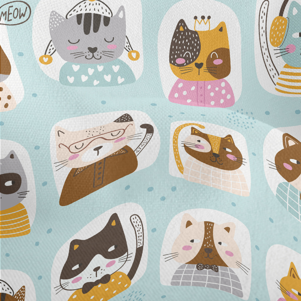 童書風格的貓咪竹節麻(幅寬150公分)