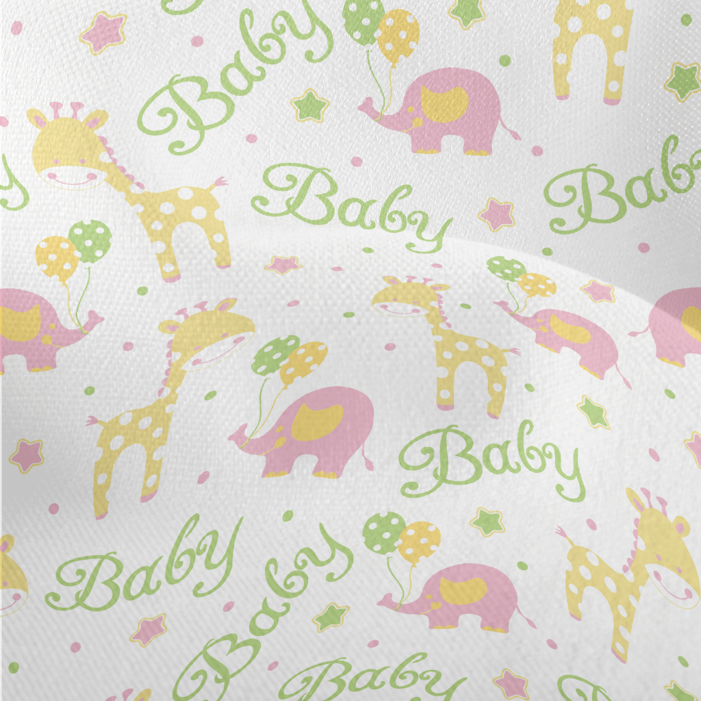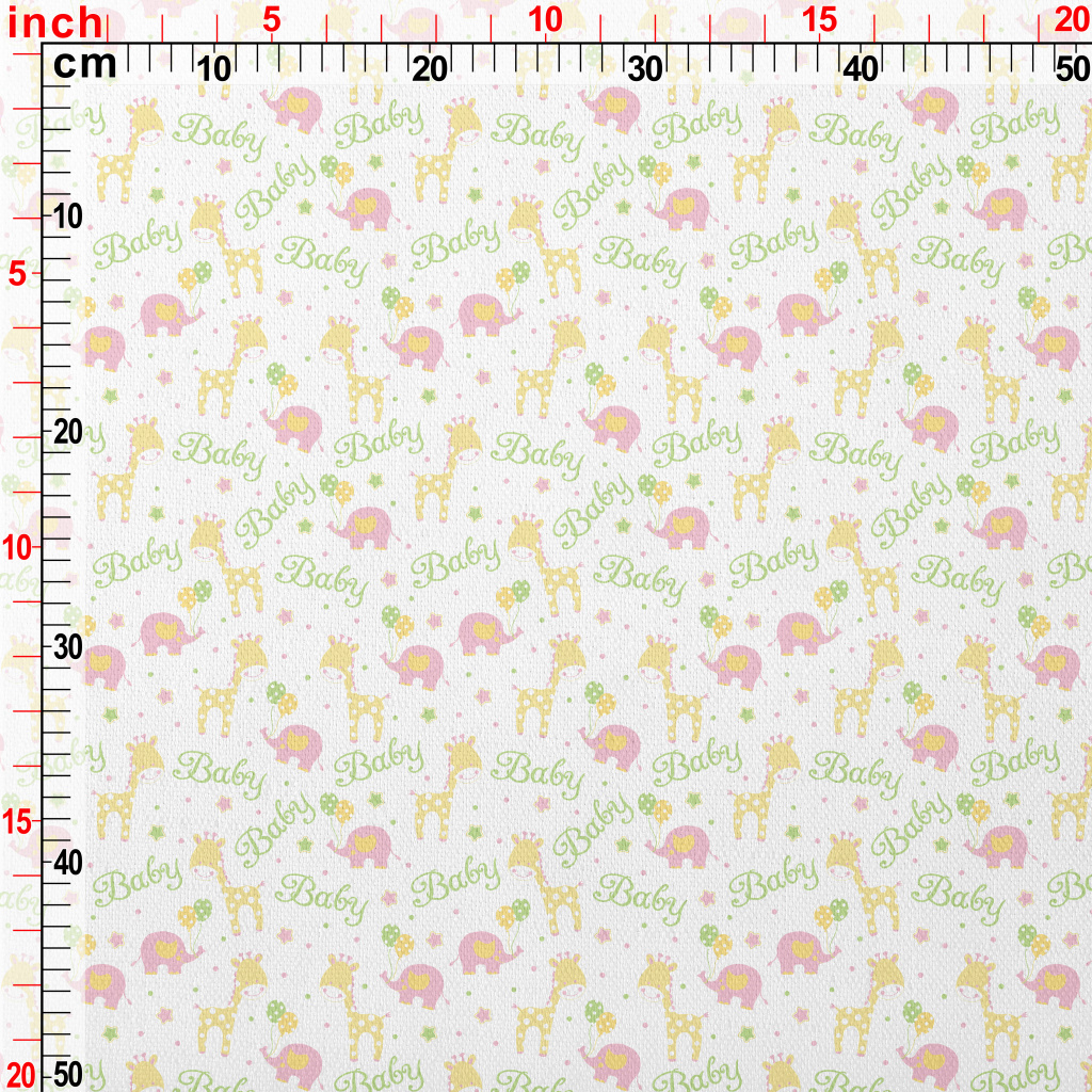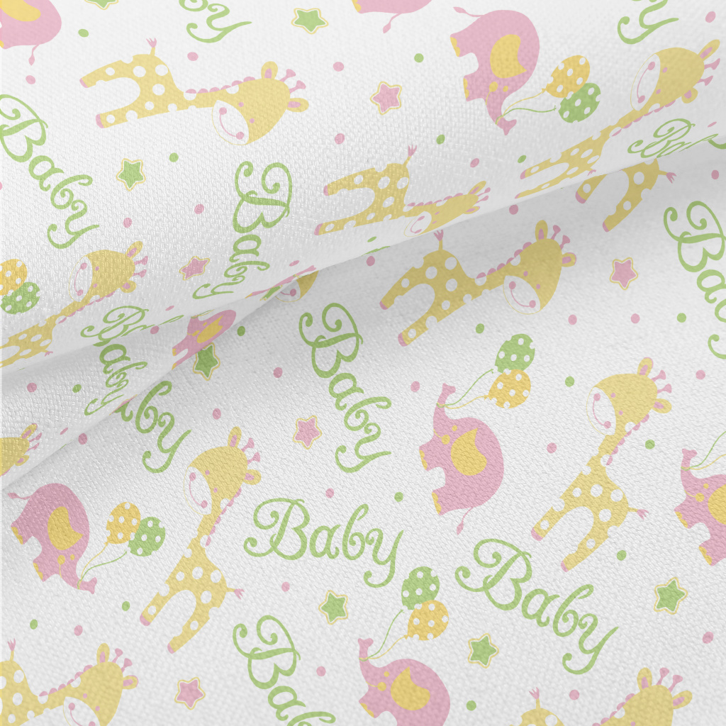 粉嫩可愛的大象與長頸鹿竹節麻(幅寬150公分)