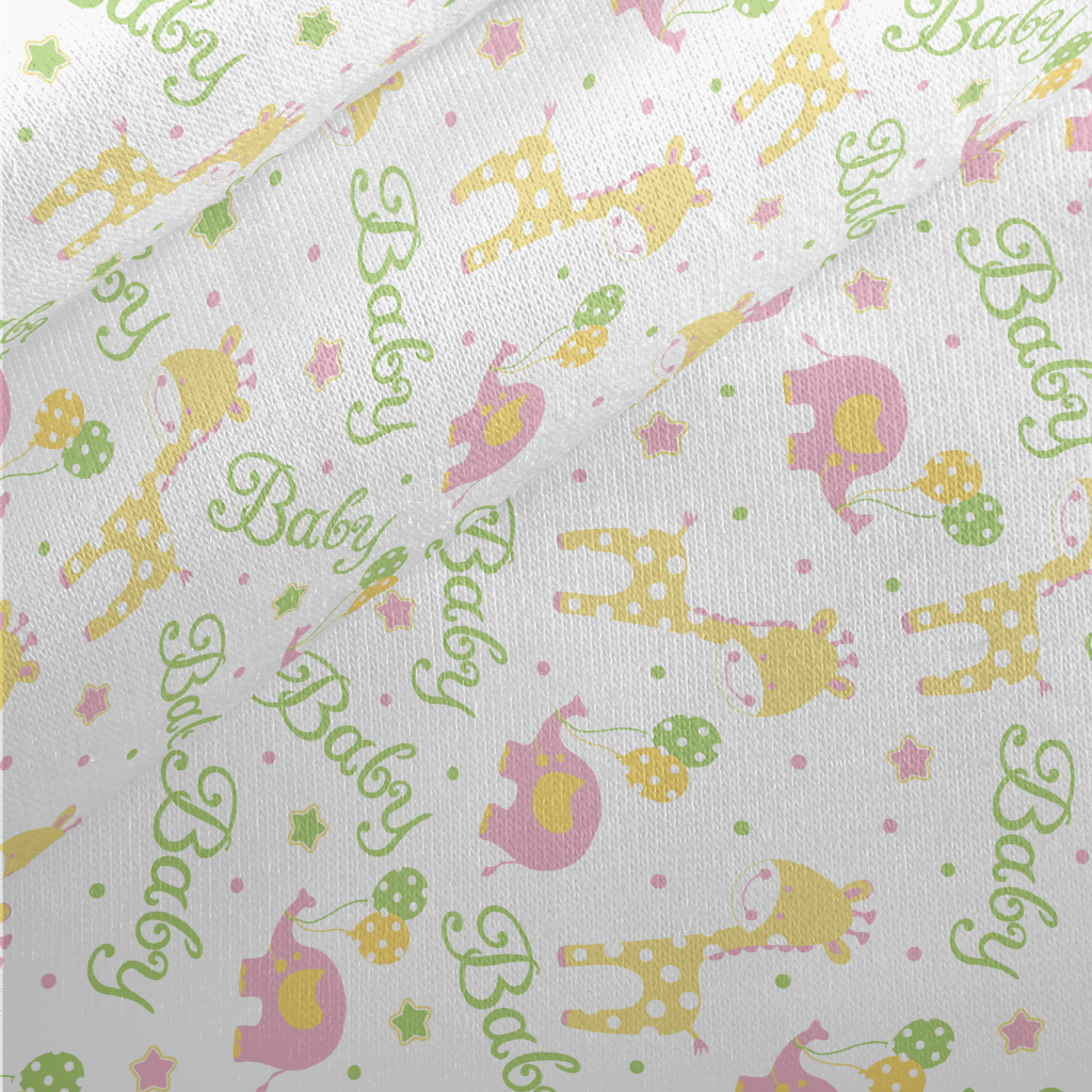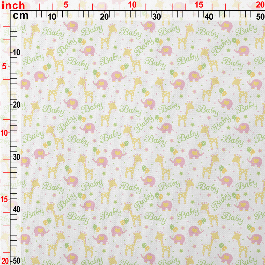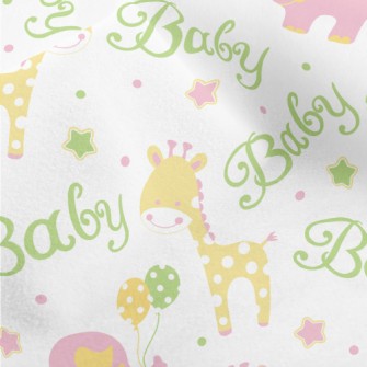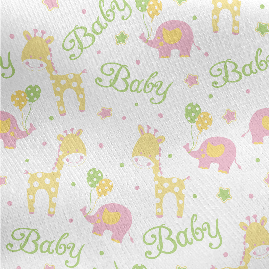 粉嫩可愛的大象與長頸鹿刷毛布(幅寬150公分)