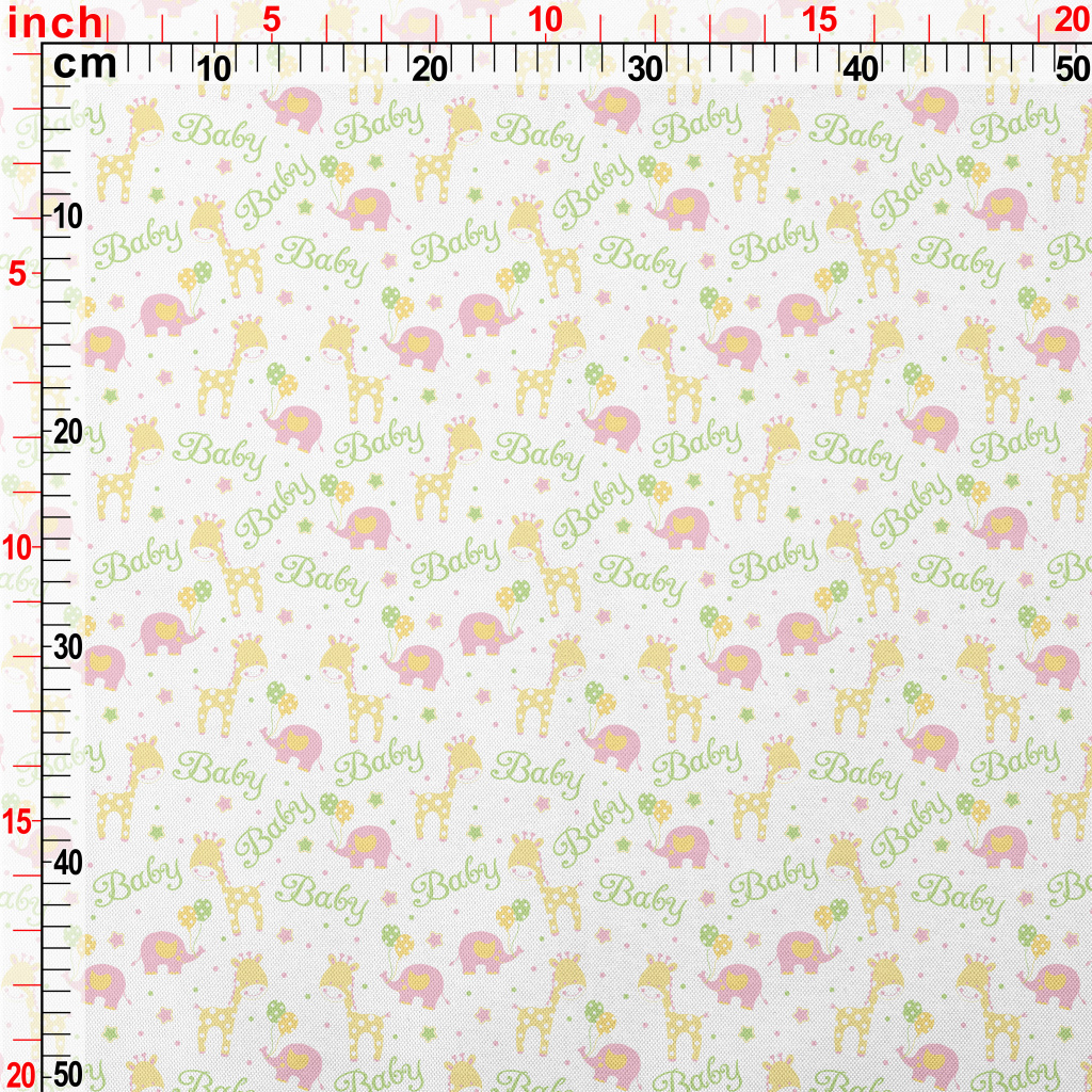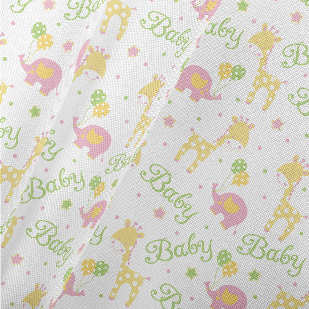 粉嫩可愛的大象與長頸鹿春亞紡(幅寬160公分)