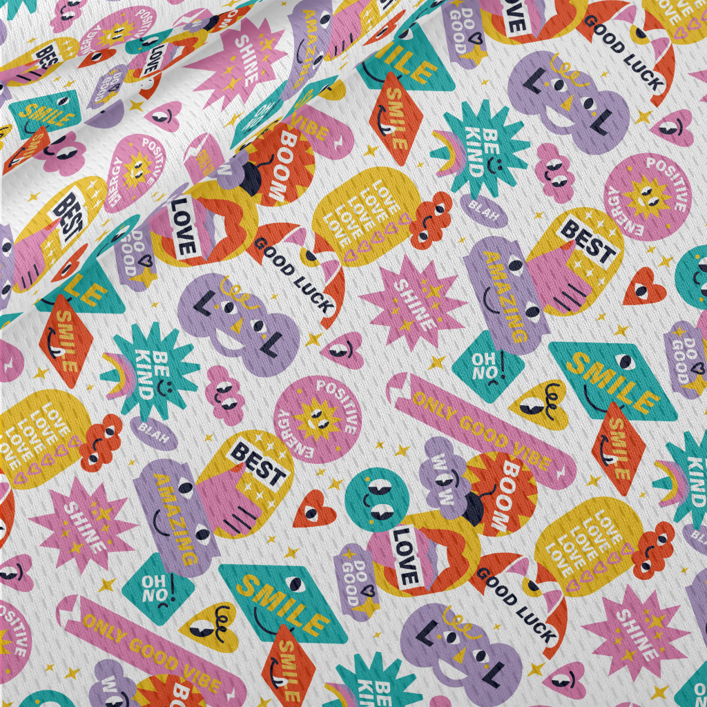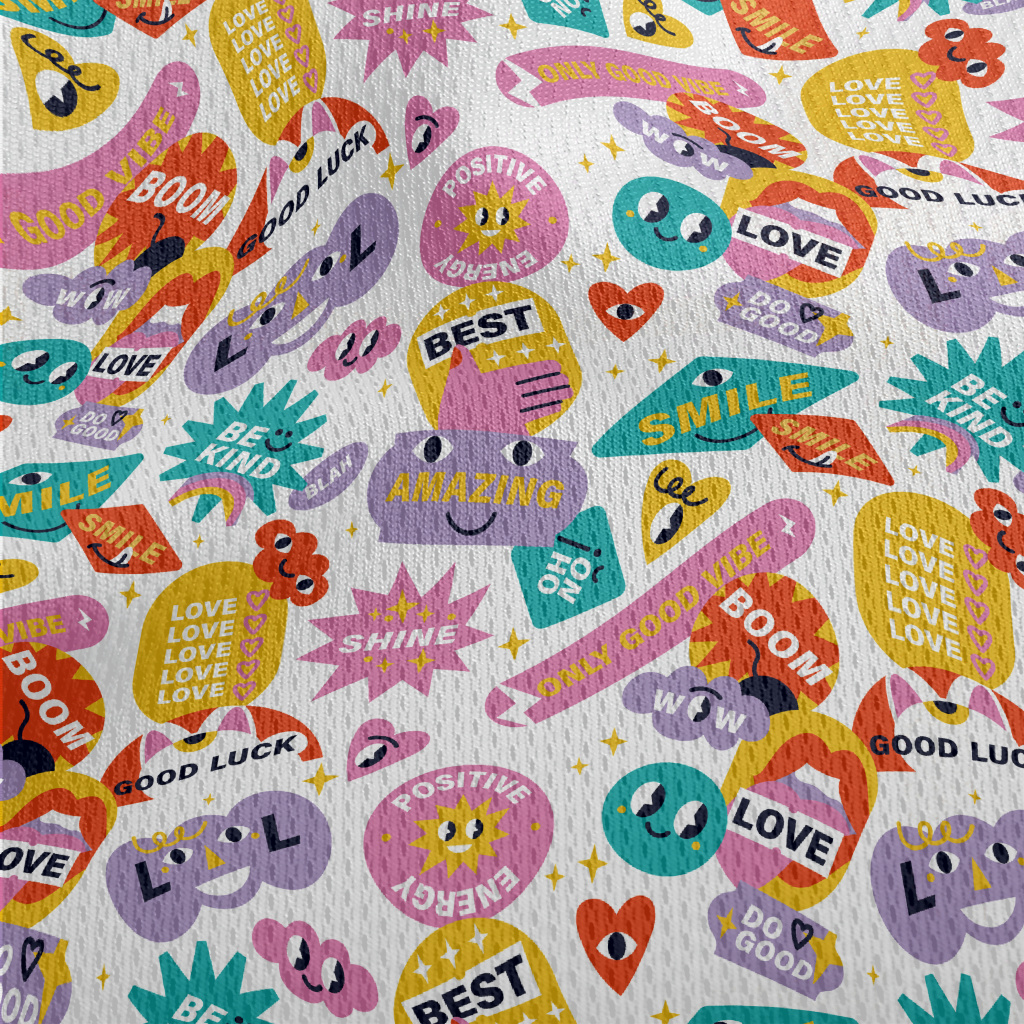 色彩繽紛的文字圖案鳥眼布(幅寬160公分)
