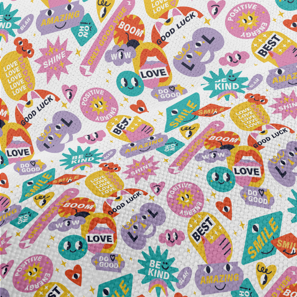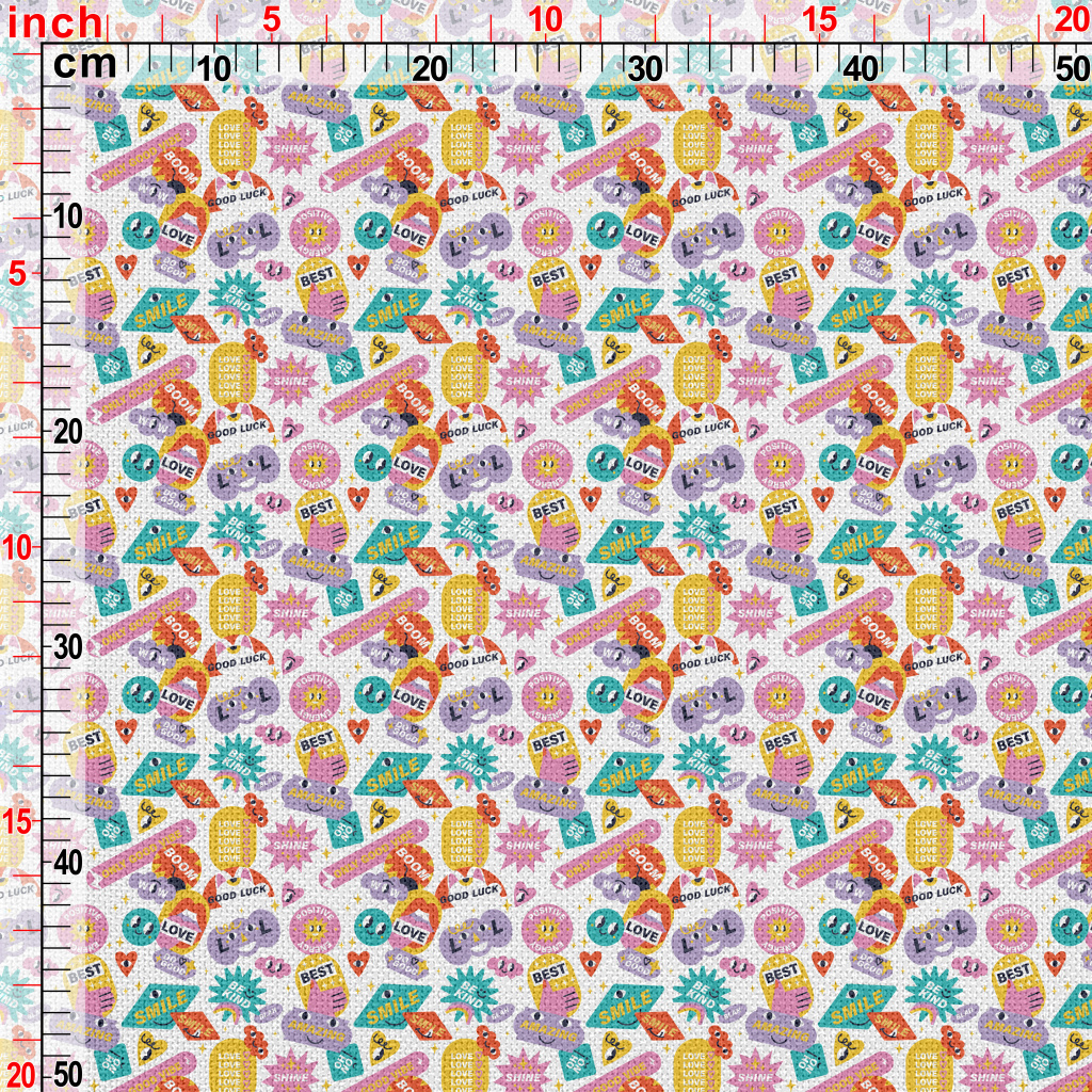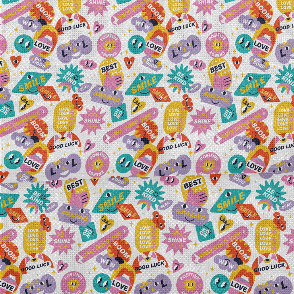 色彩繽紛的文字圖案麻布(幅寬150公分)