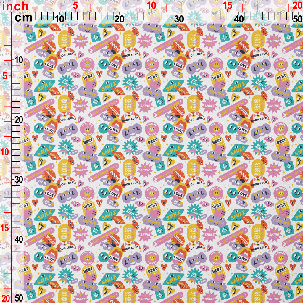 色彩繽紛的文字圖案水晶絨(幅寬160公分)