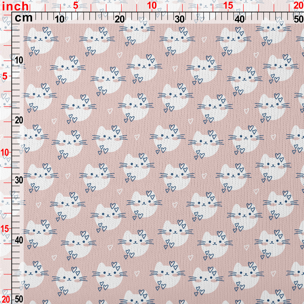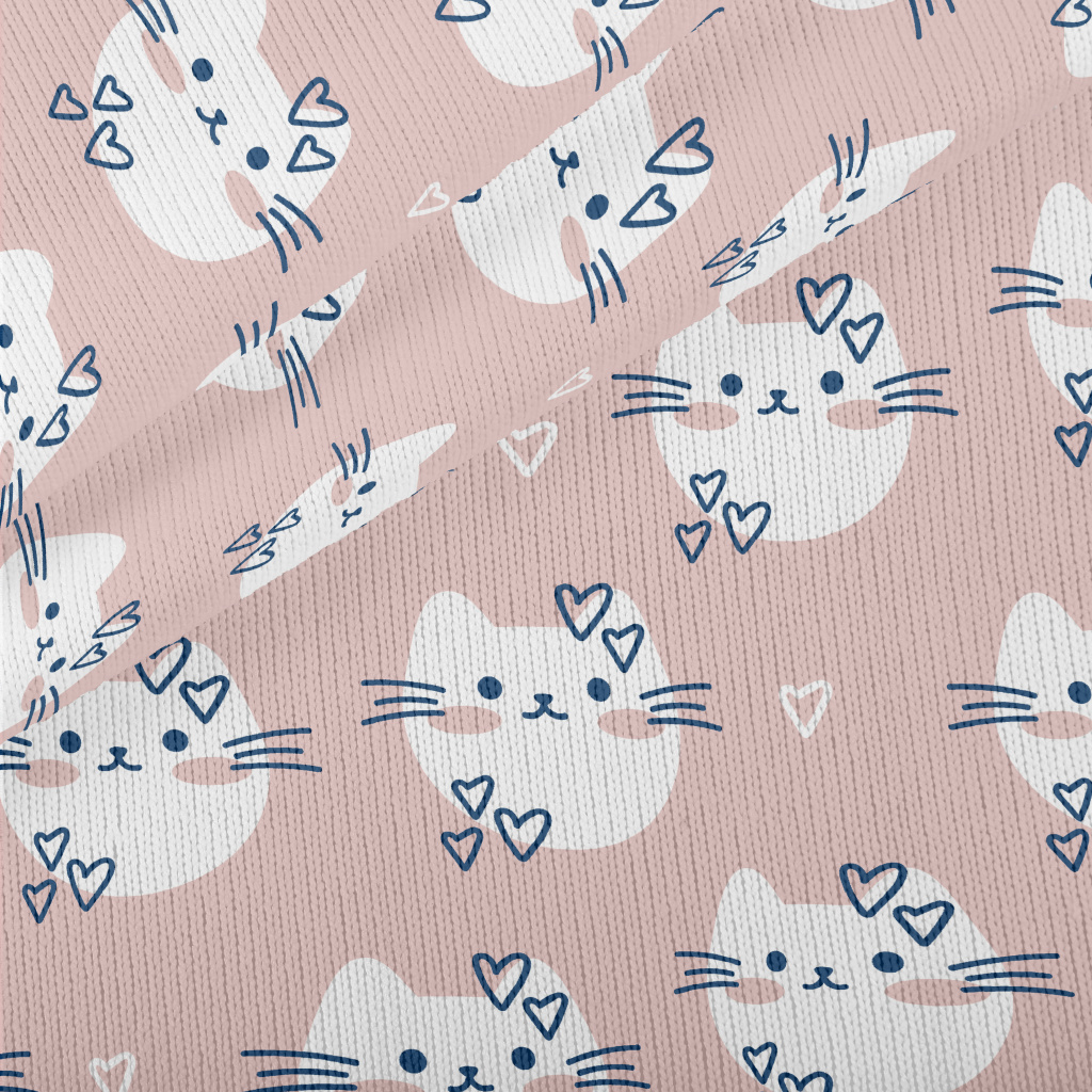 粉嫩可愛的愛心貓咪仿毛衣布(幅寬150公分)