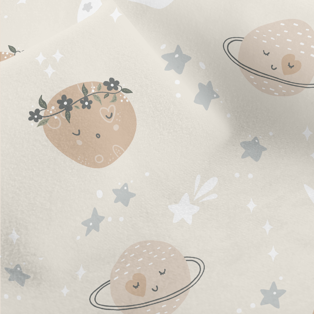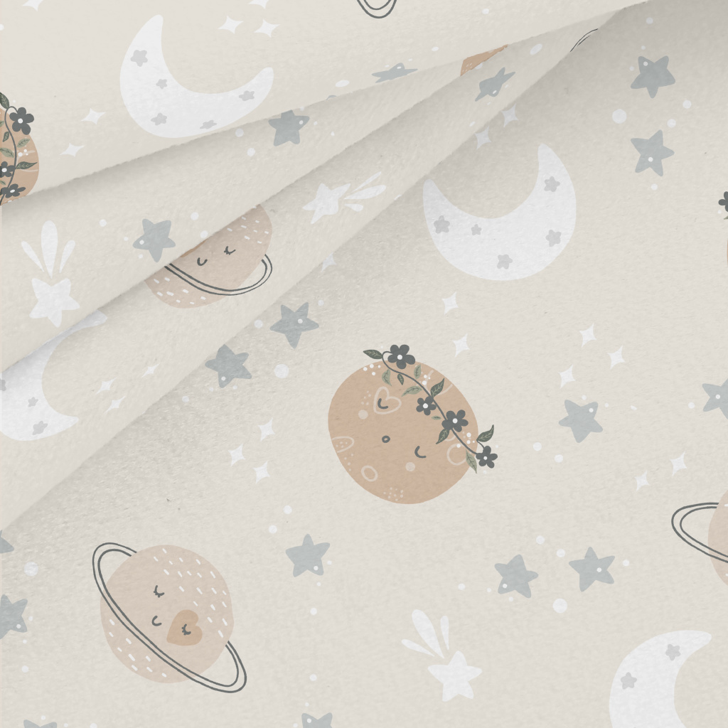 沉睡可愛的星球和星空水晶絨(幅寬160公分)