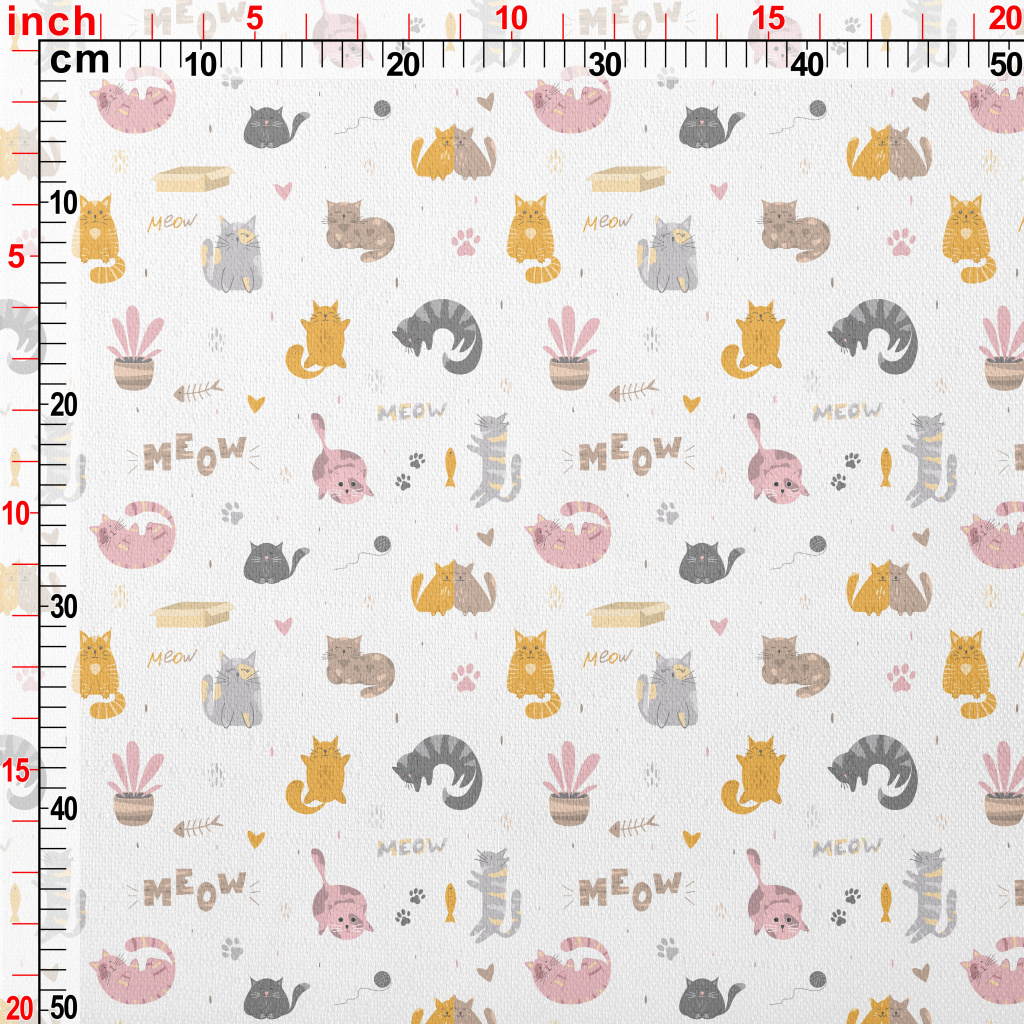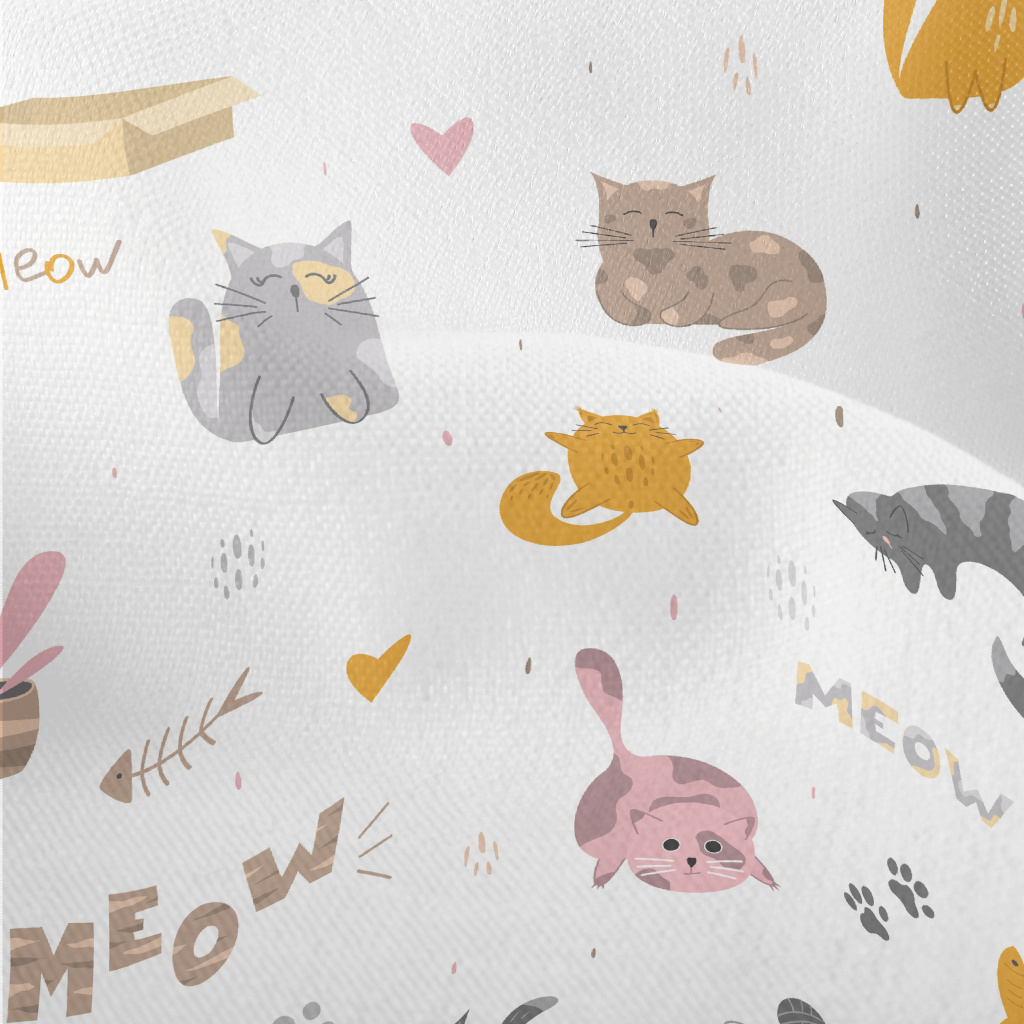 圓滾可愛的貓咪竹節麻(幅寬150公分)