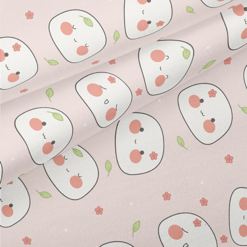 圓潤可愛的麻糬圖案仿棉布(幅寬150公分)