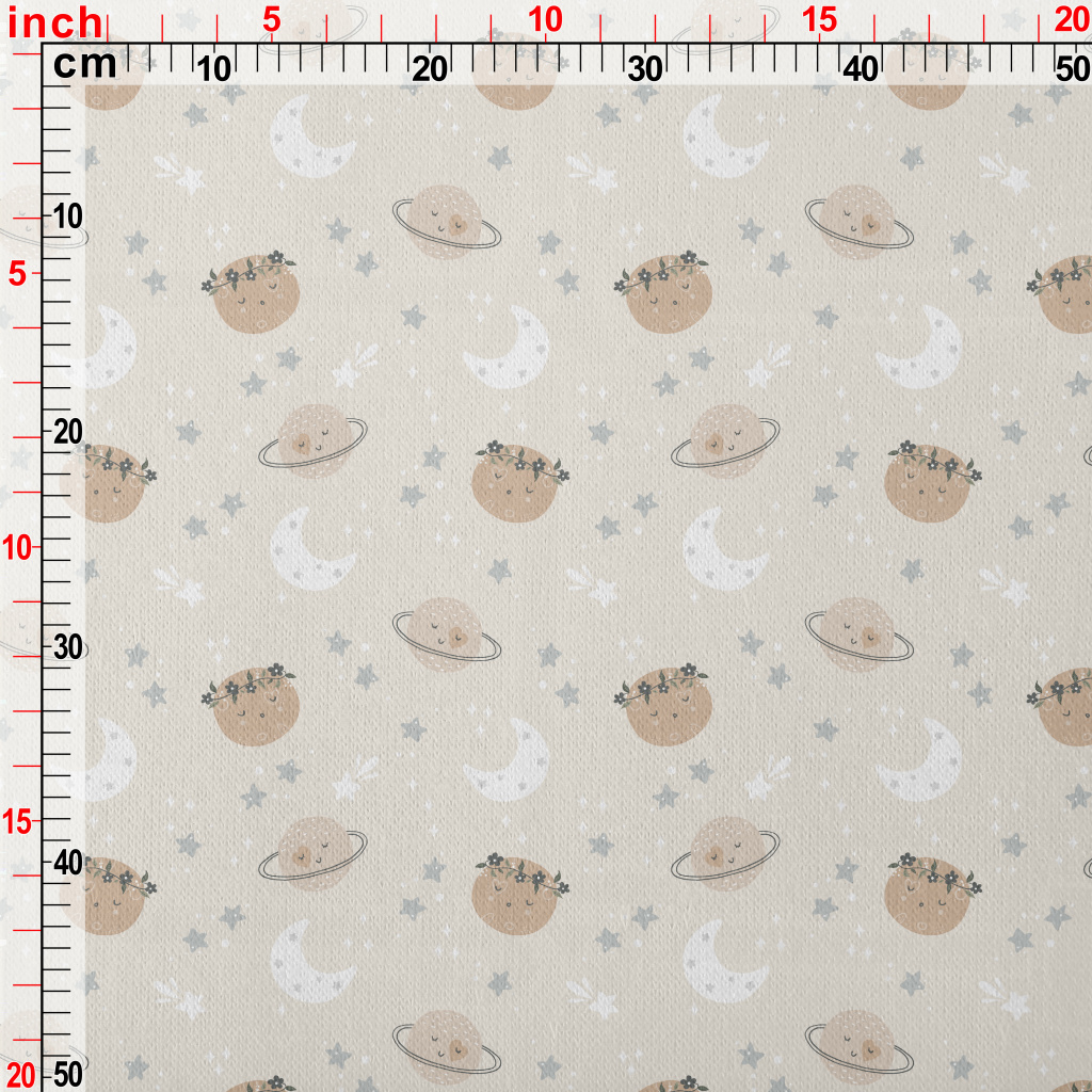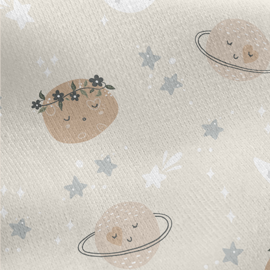 沉睡可愛的星球和星空刷毛布(幅寬150公分)
