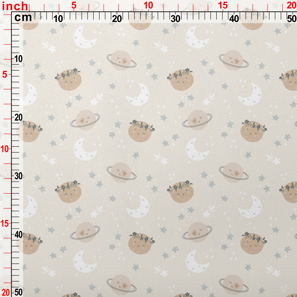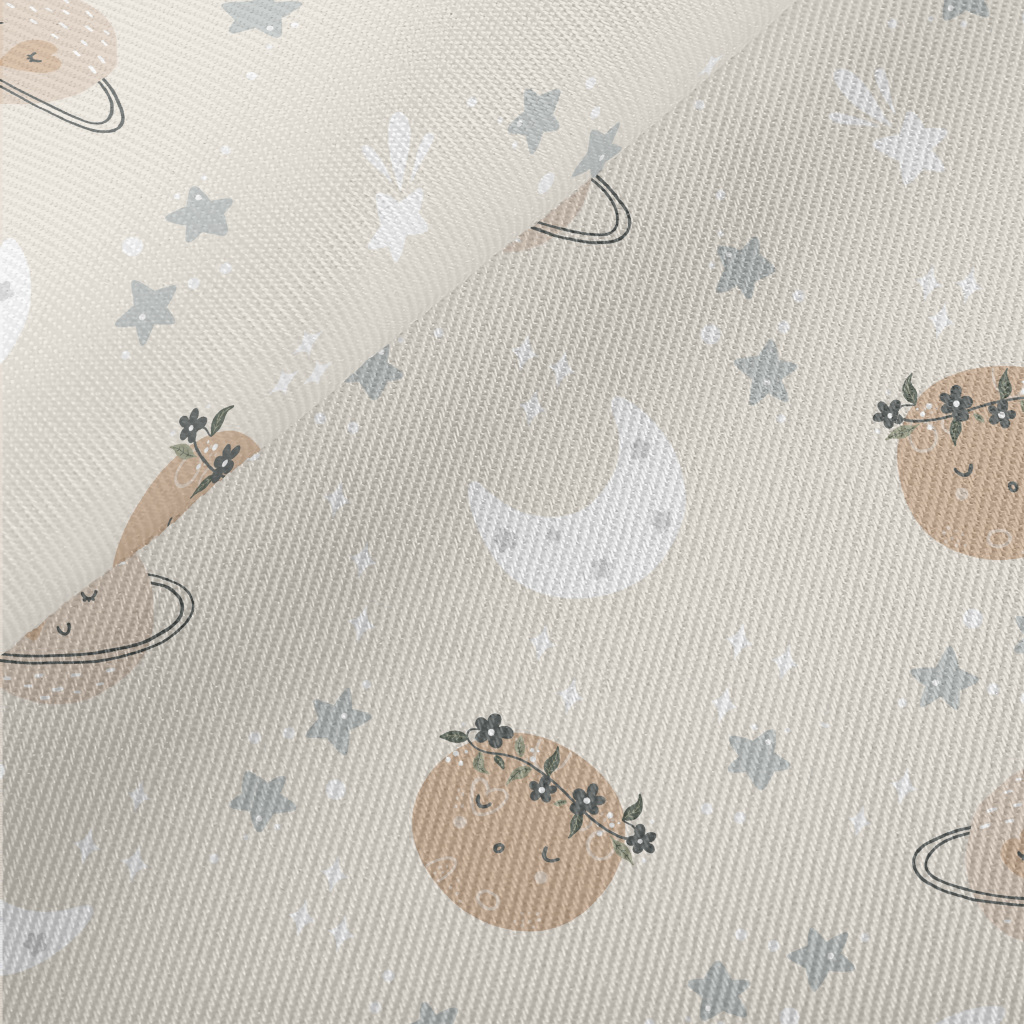 沉睡可愛的星球和星空厚棉布(幅寬150公分)