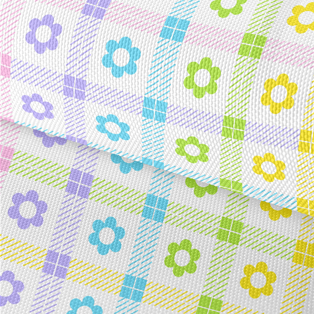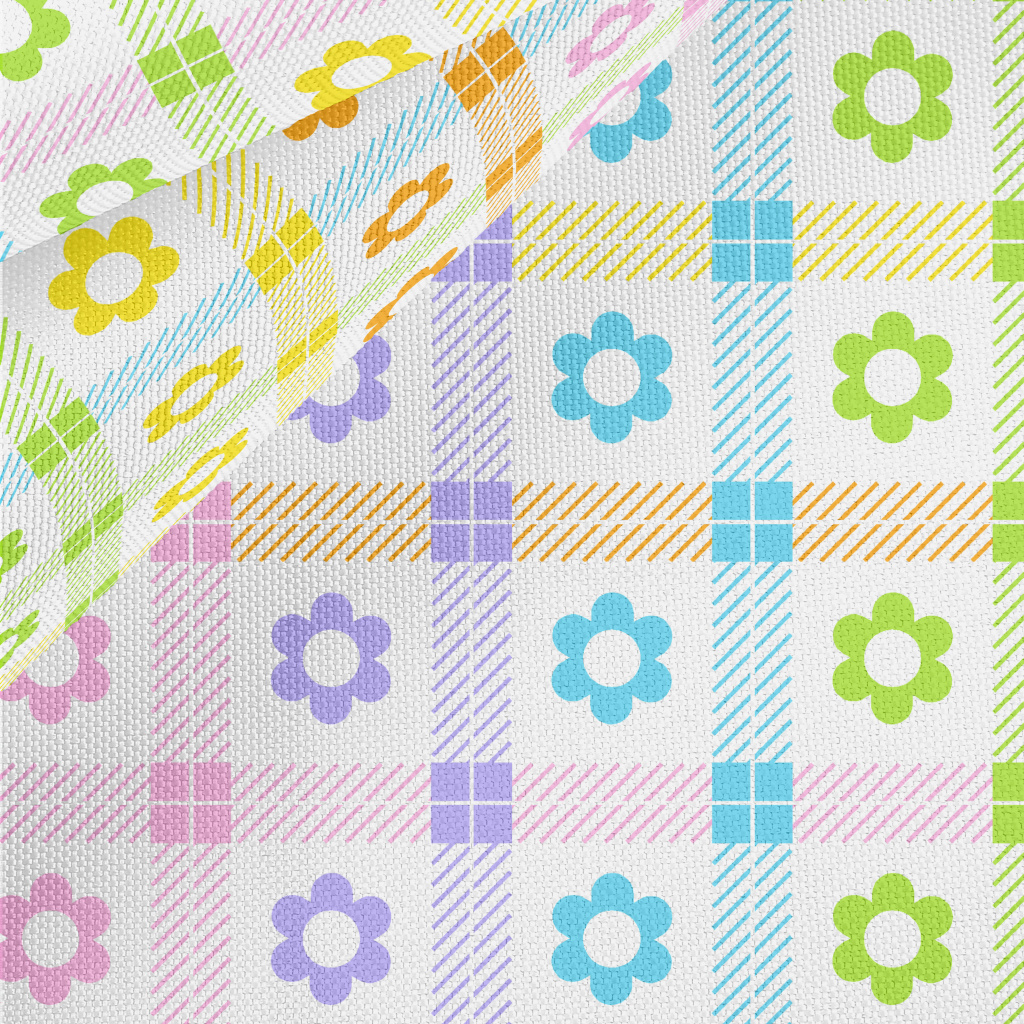 彩色繽紛小花的格子牛津布(幅寬150公分)