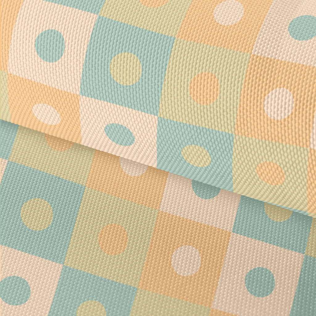色彩對比的圓點格子牛津布(幅寬150公分)