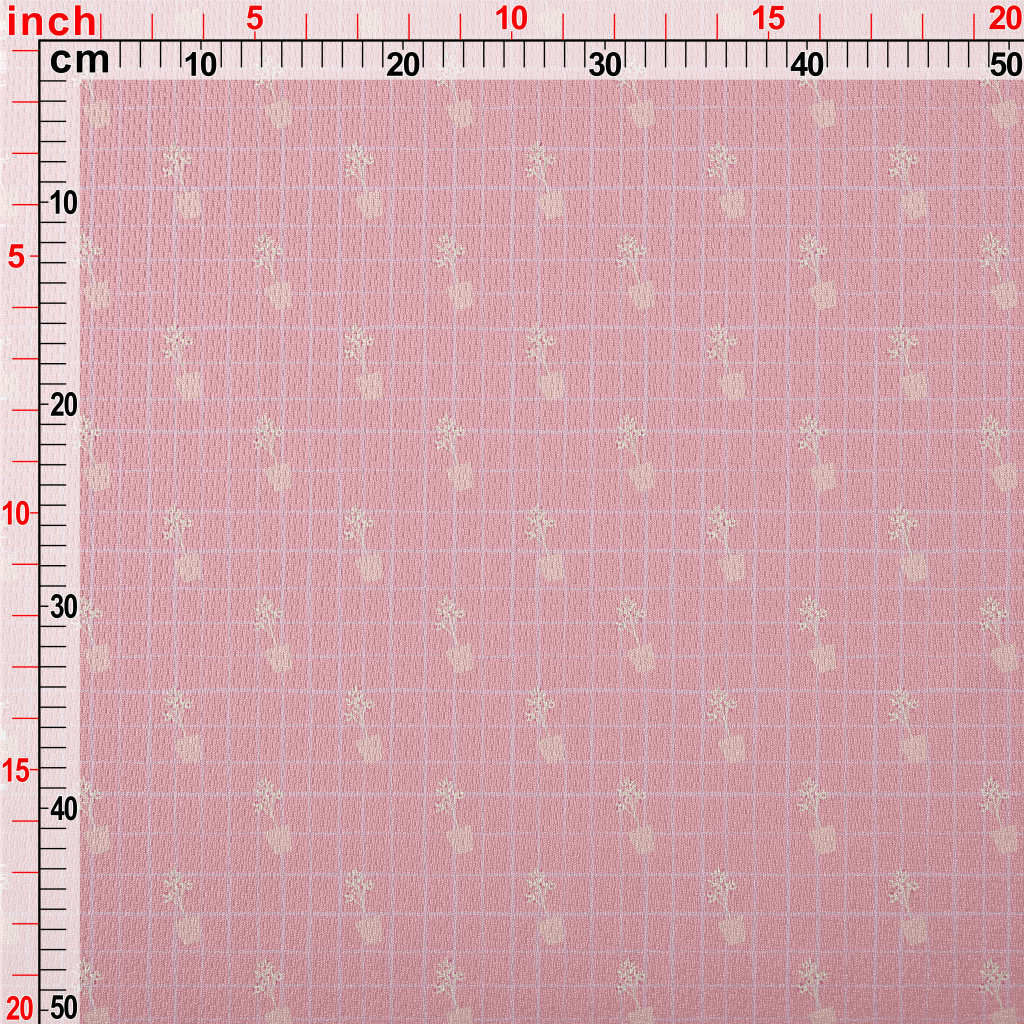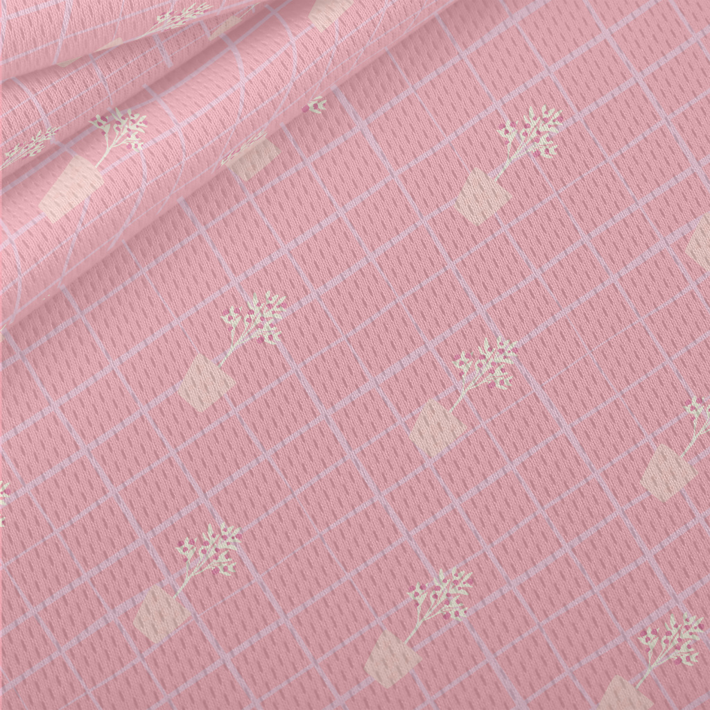 簡約盆栽花的格子鳥眼布(幅寬160公分)