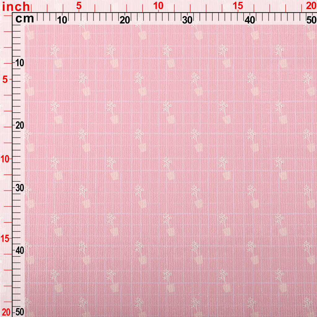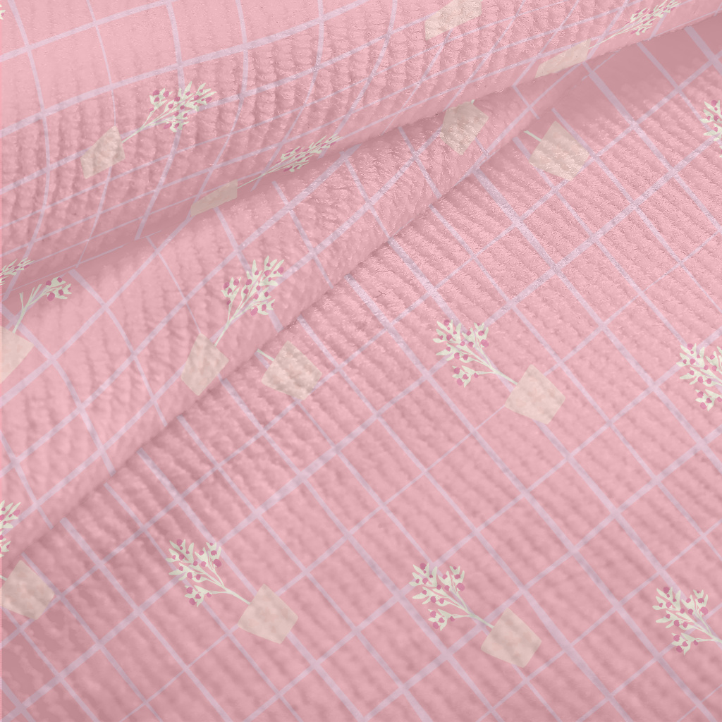 簡約盆栽花的格子毛巾布(幅寬160公分)