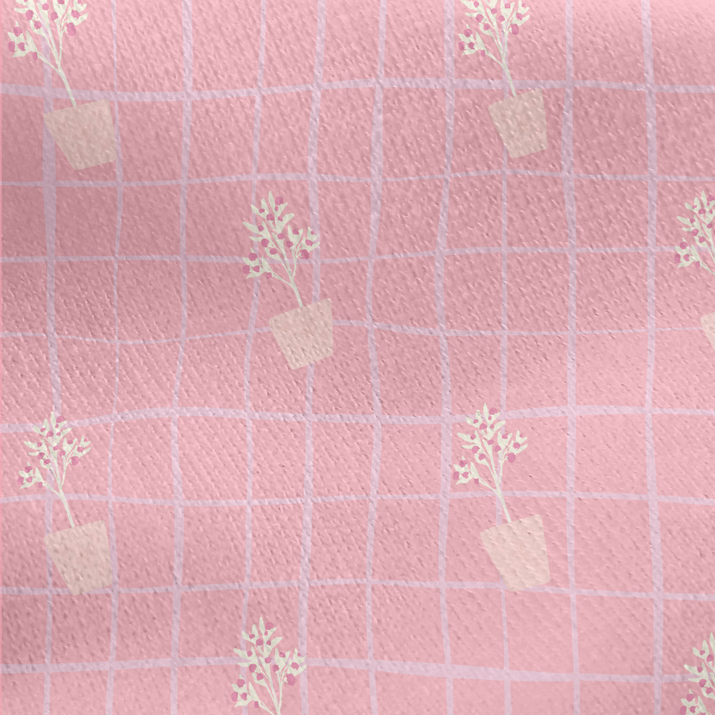 簡約盆栽花的格子刷毛布(幅寬150公分)