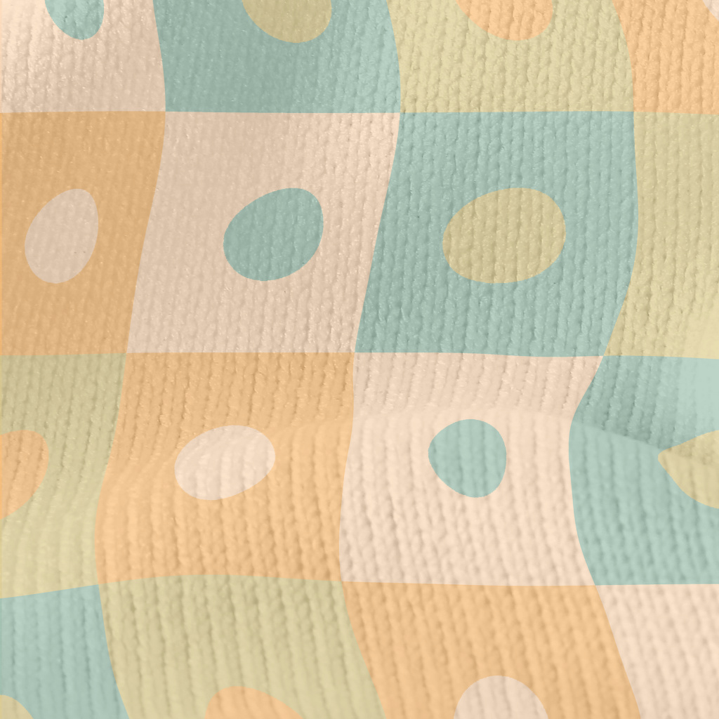 色彩對比的圓點格子仿毛衣布(幅寬150公分)