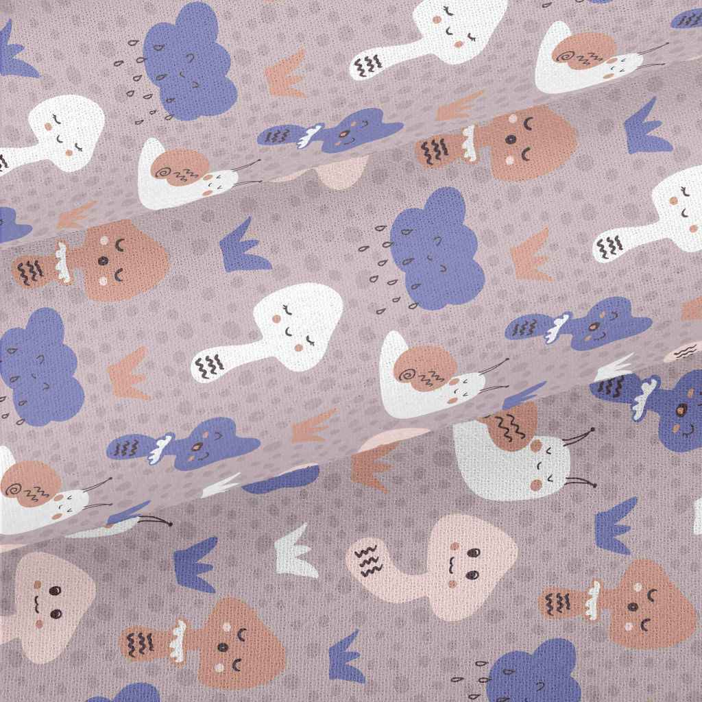 可愛簡易的蝸牛和香菇雪紡布(幅寬150公分)