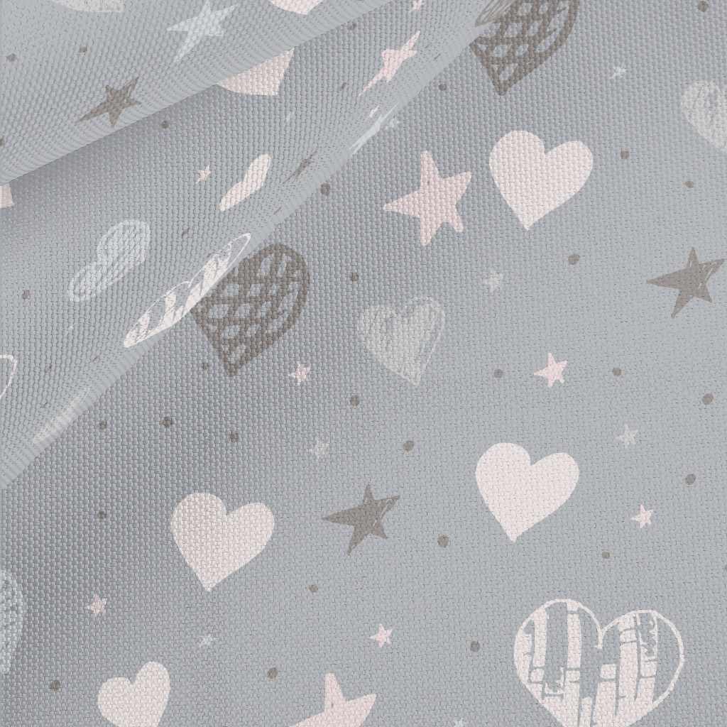 手繪簡易的愛心與星星牛津布(幅寬150公分)