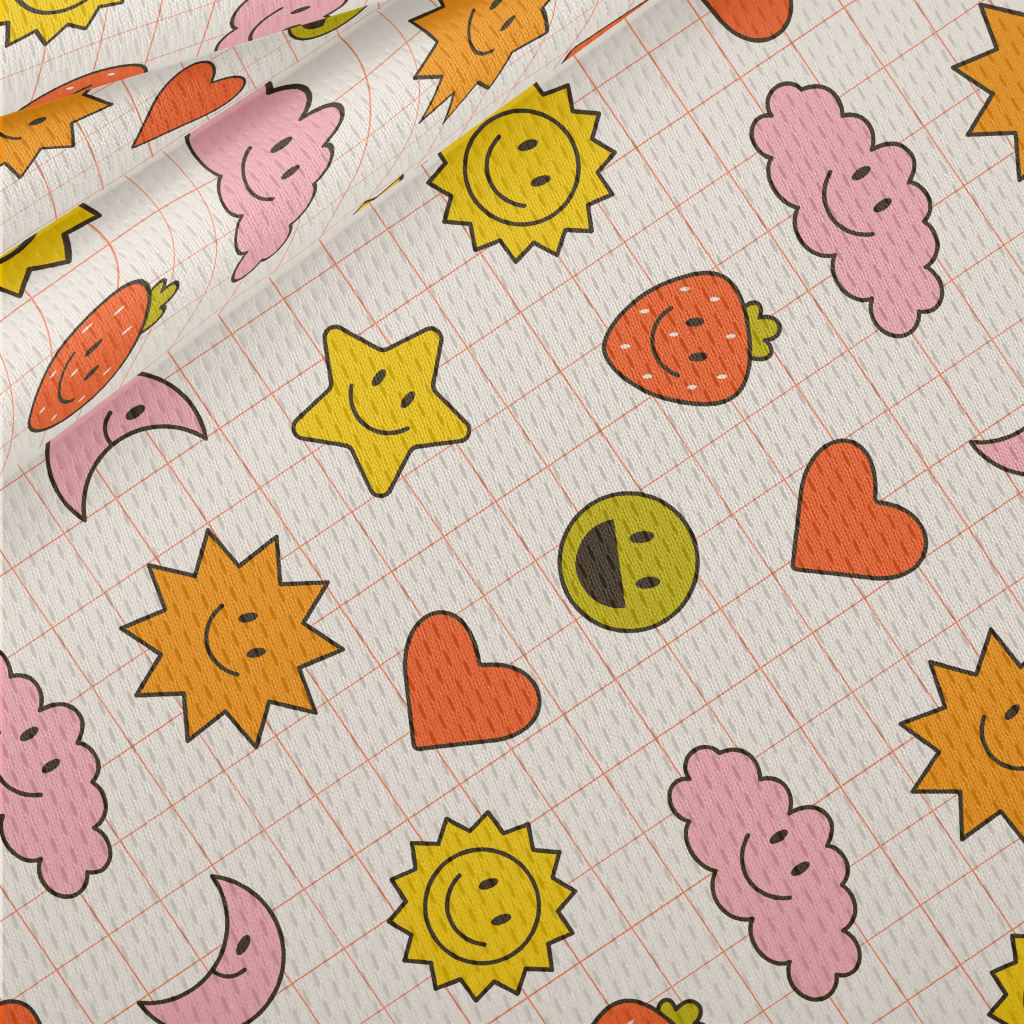 可愛簡易的表情圖形鳥眼布(幅寬160公分)