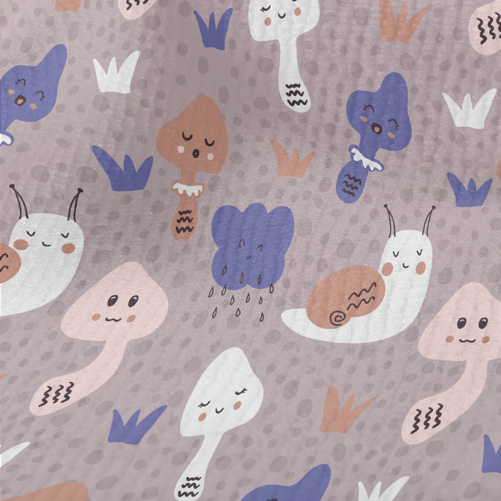 可愛簡易的蝸牛和香菇毛巾布(幅寬160公分)