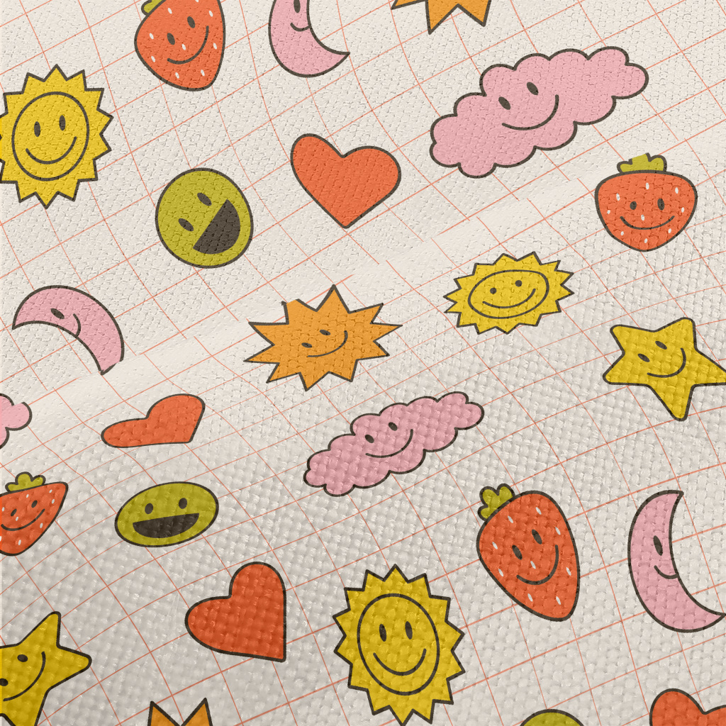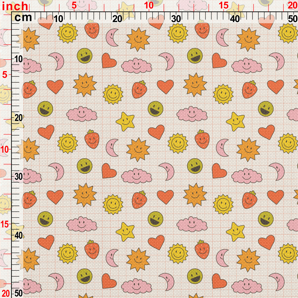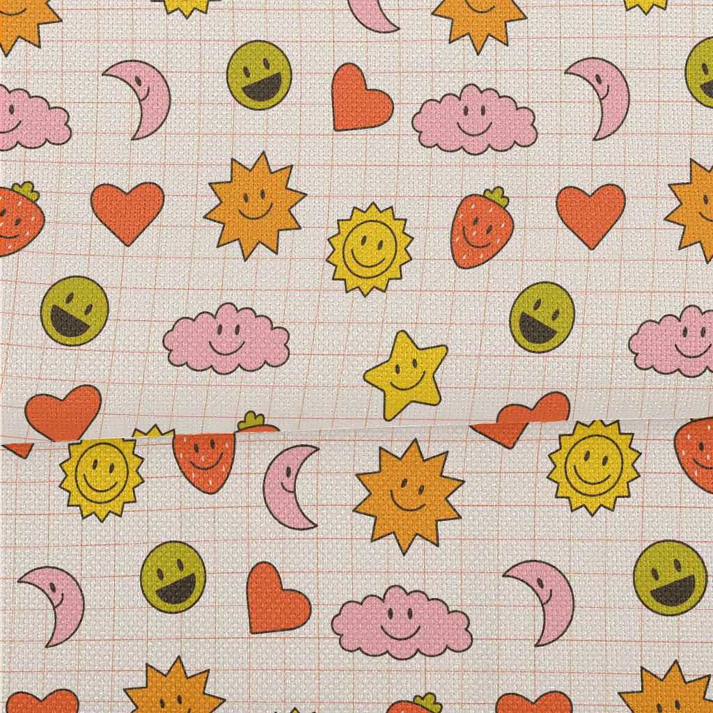 可愛簡易的表情圖形麻布(幅寬150公分)
